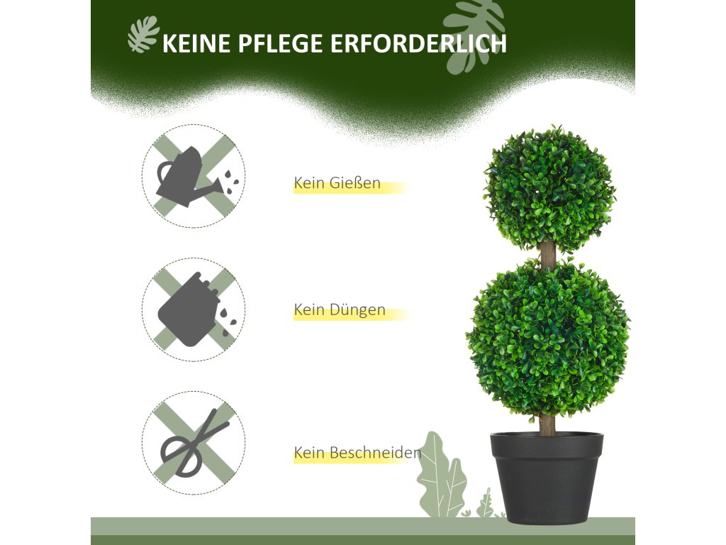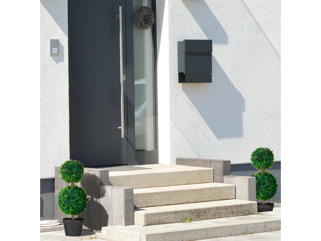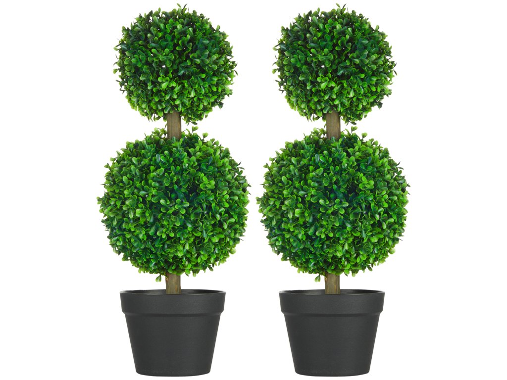 HOMCOM sada 2 umělých stromků, 2 stromky, venkovní, 17 cm x 17 cm x 60 cm, zelená + hnědá + černá