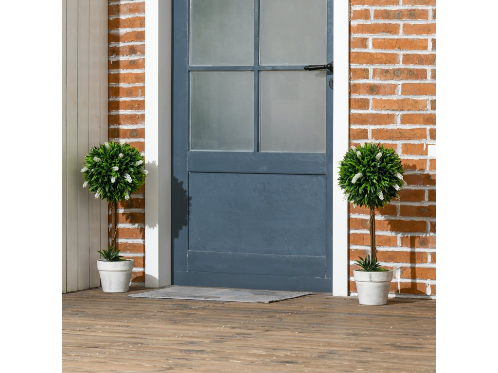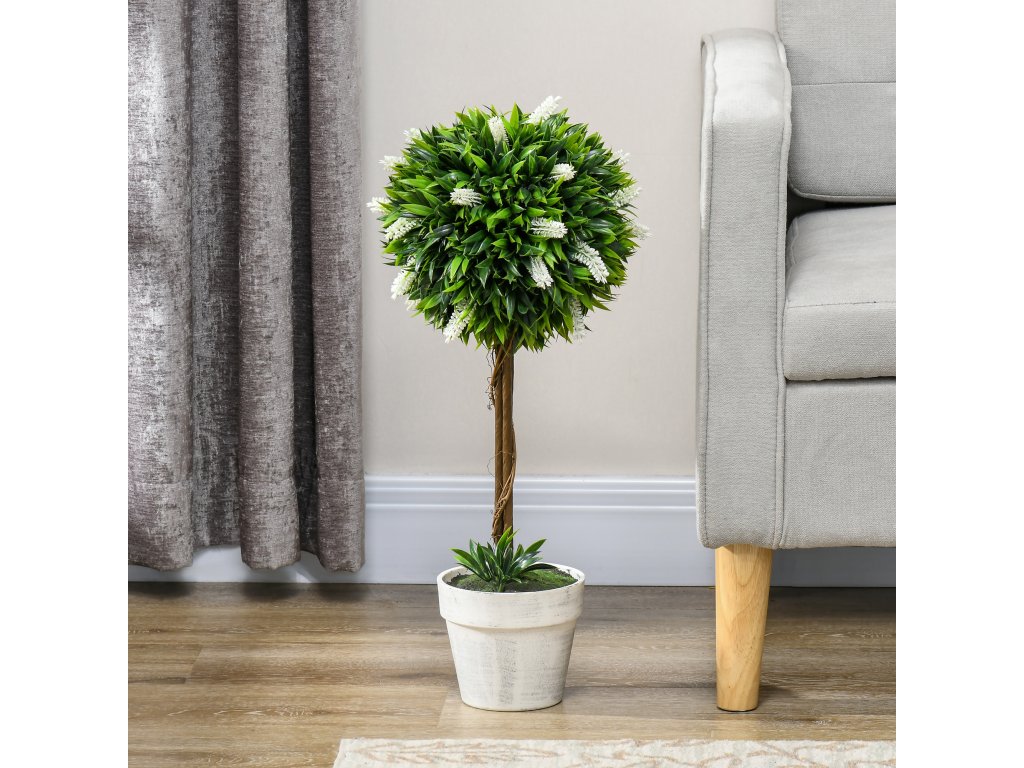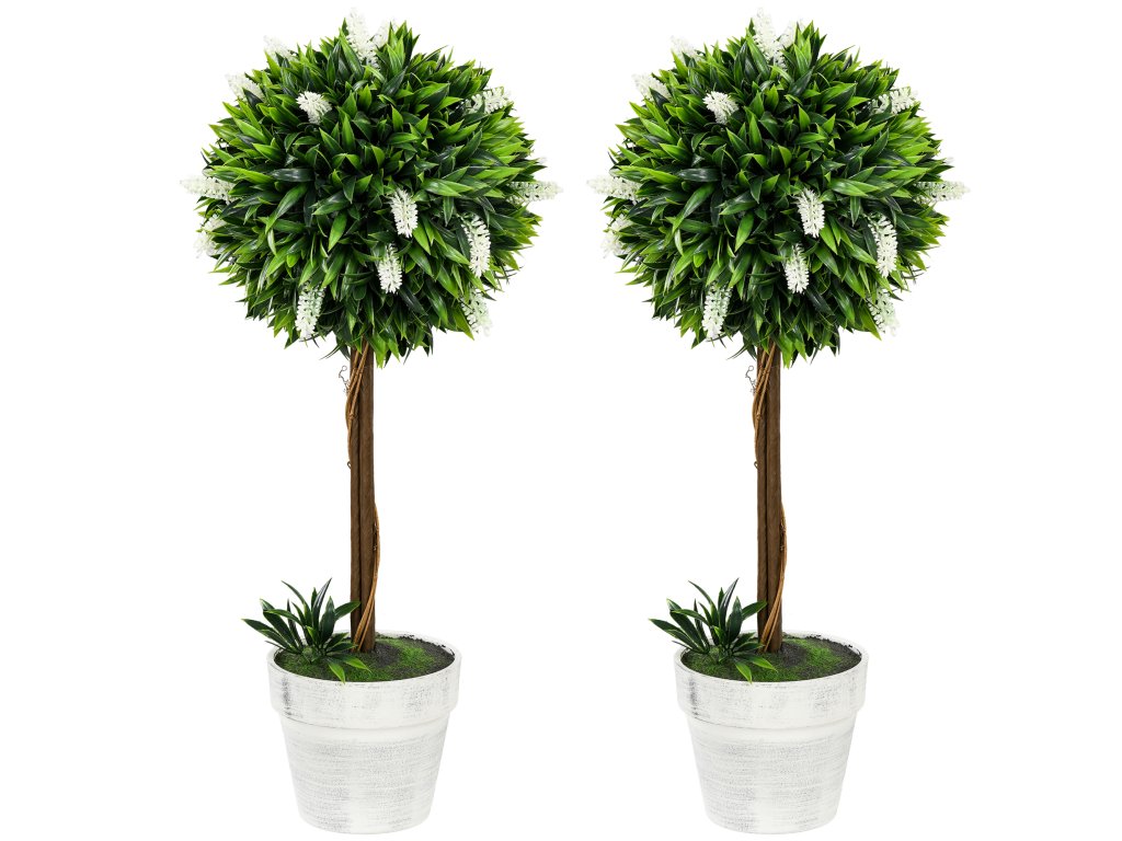 HOMCOM Sada 2 umělých stromků levandule, výška 60 cm, včetně květináče a umělého mechu, bílá barva