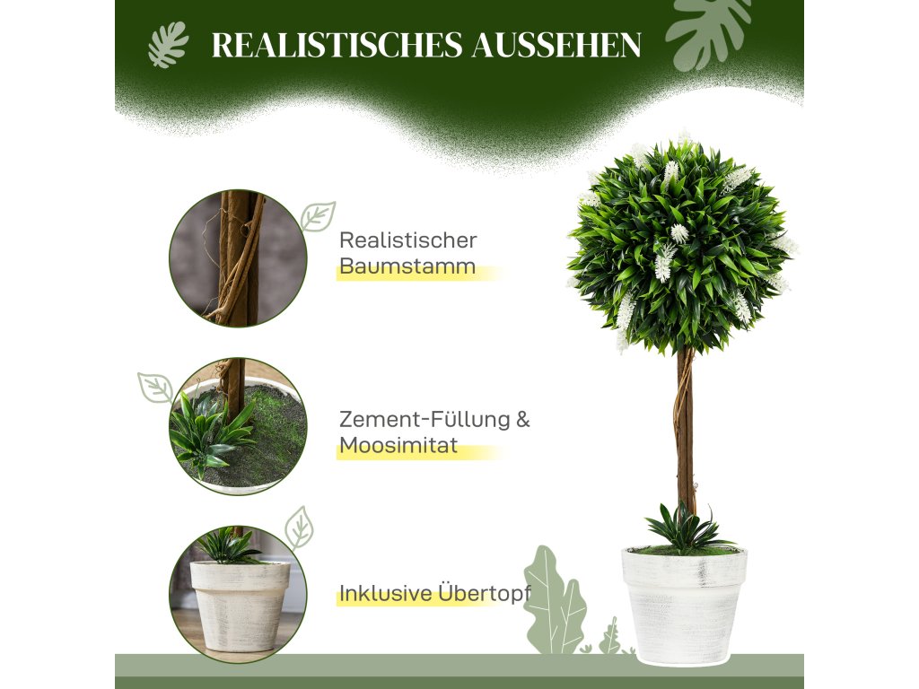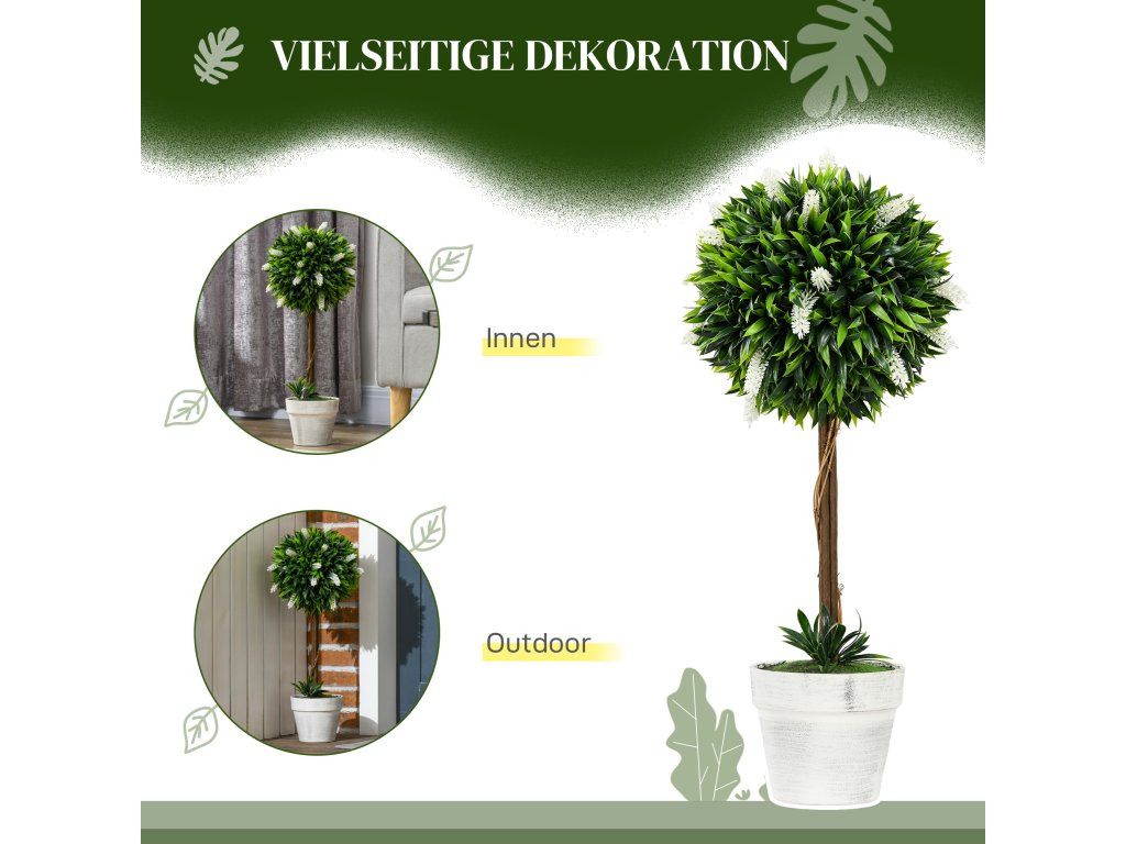 - Vysoce kvalitní zpracování: Tyto umělé stromky jsou vyrobeny z odolného plastu, mají 450 listů a 25 květů levandule, navržené v působivě realistických barvách a struktuře - téměř k nerozeznání od skutečných rostlin.
