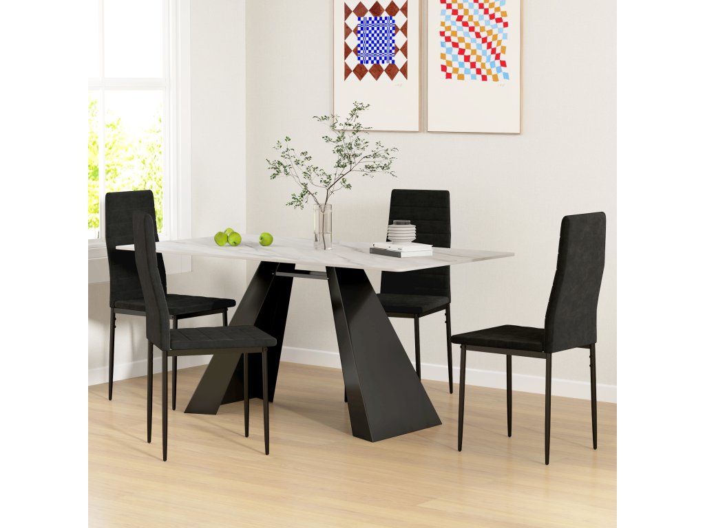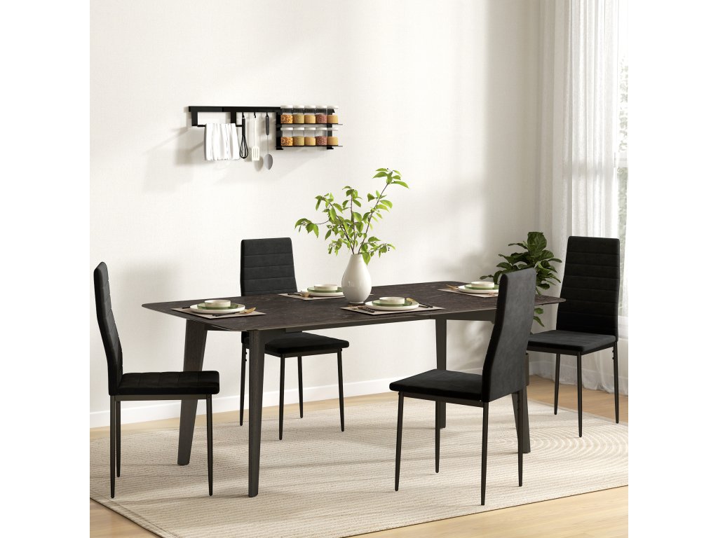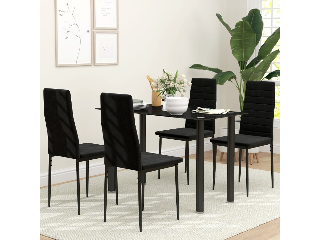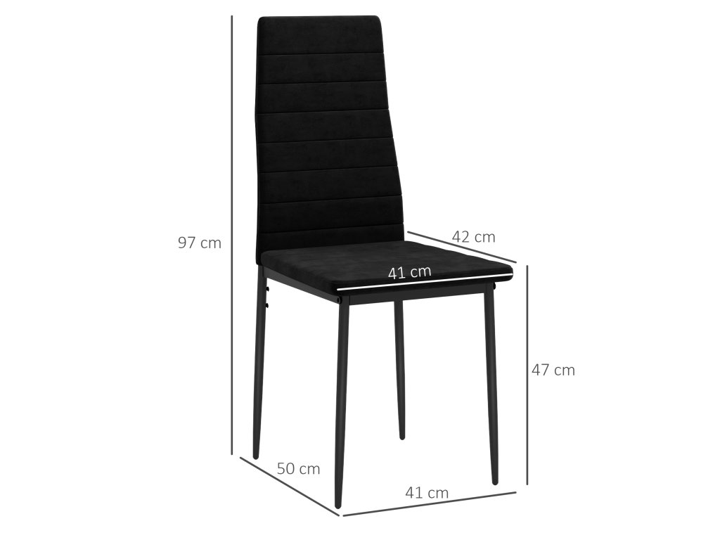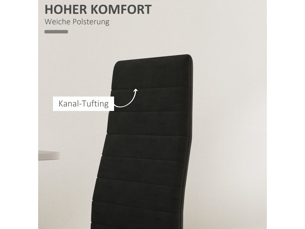 HOMCOM Sada 4 jídelních židlí, bez područek, látkové čalounění, kovové nohy, černá barva