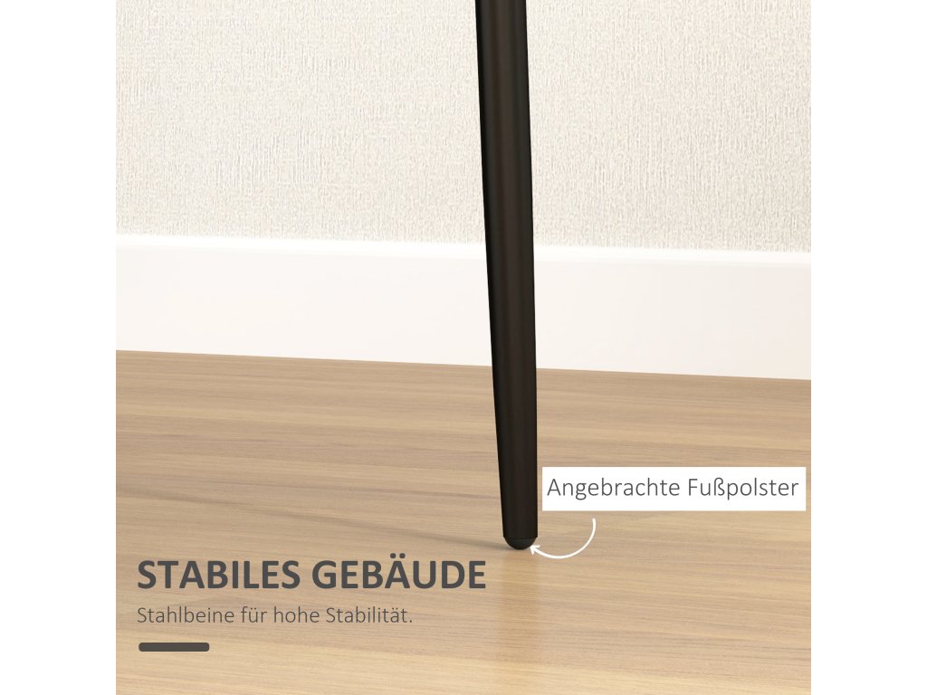 - Robustní konstrukce: Jídelní židle s robustními kovovými nohami s práškovým nástřikem zajišťují vysokou stabilitu. Integrované protiskluzové podložky pod nohy účinně chrání podlahu před poškrábáním.