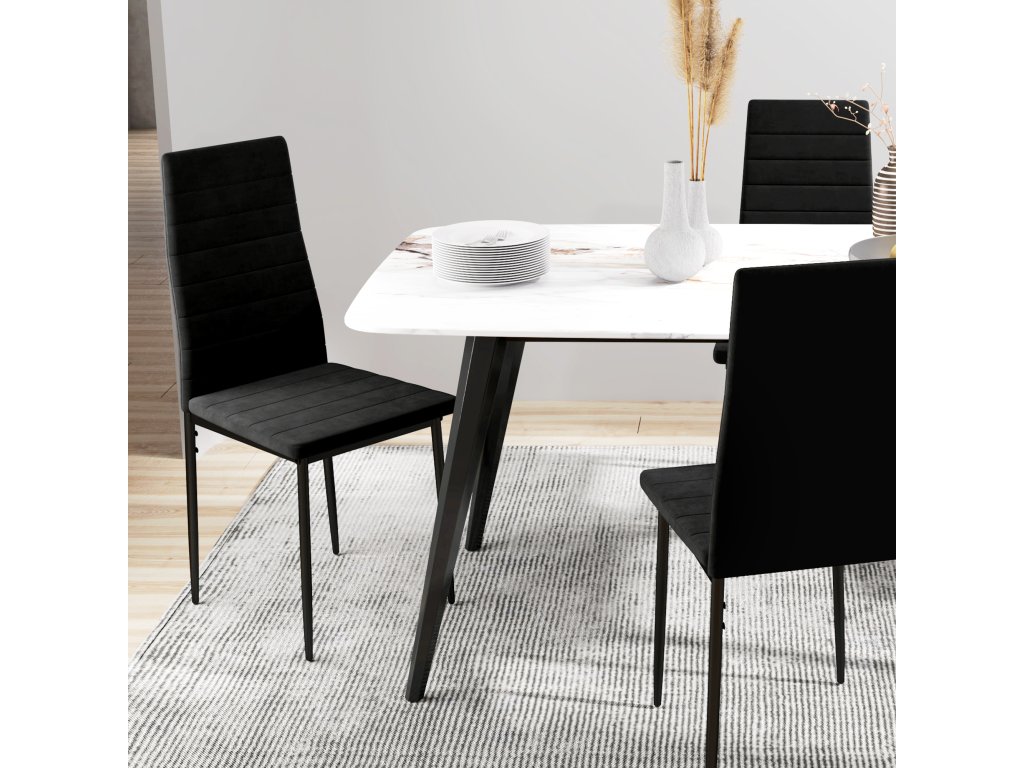 Tyto jídelní židle oživí váš kuchyňský kout nebo poskytnou prostor pro hosty. Jejich klasický, jednoduchý design se hodí k mnoha stylům interiéru. Díky kovové konstrukci nabízejí vynikající pohodlí díky měkkému čalounění sedáků a sametové látce. Vysoké opěradlo poskytuje ideální bederní oporu, zatímco kovové nohy zlepšují stabilitu a odolnost.