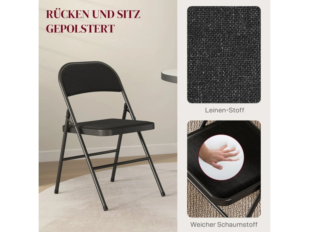 HOMCOM sada 4 skládacích židlí, přenosné kancelářské židle, kovové nohy, skládací židle do kanceláře, recepce, čekárny, vzhled lnu, černá barva