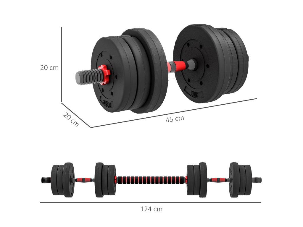 HOMCOM Sada činek 2 v 1 20 kg Nastavitelná činka a činka Profesionální posilovací činka černá