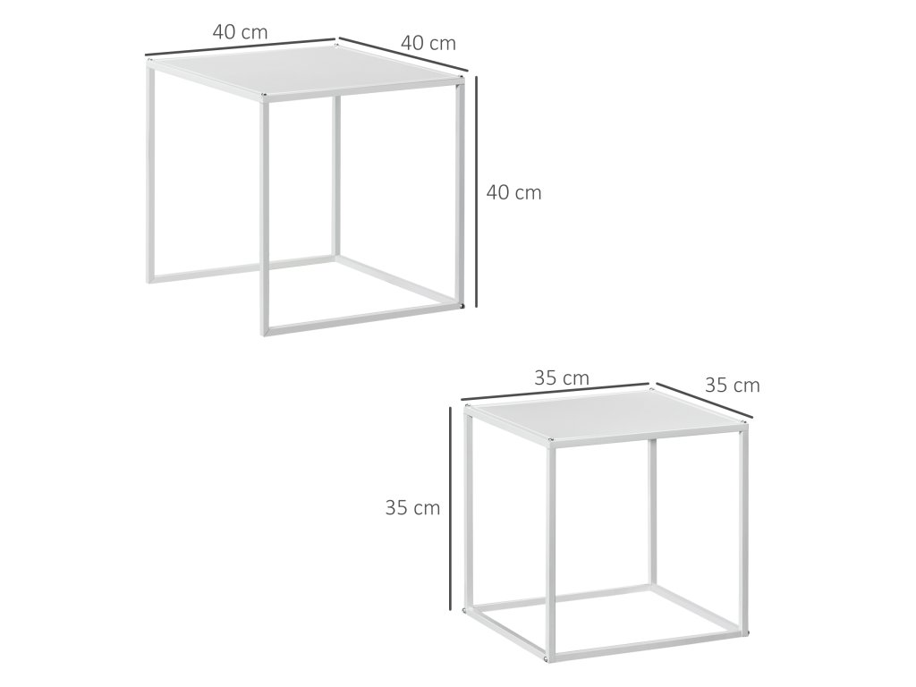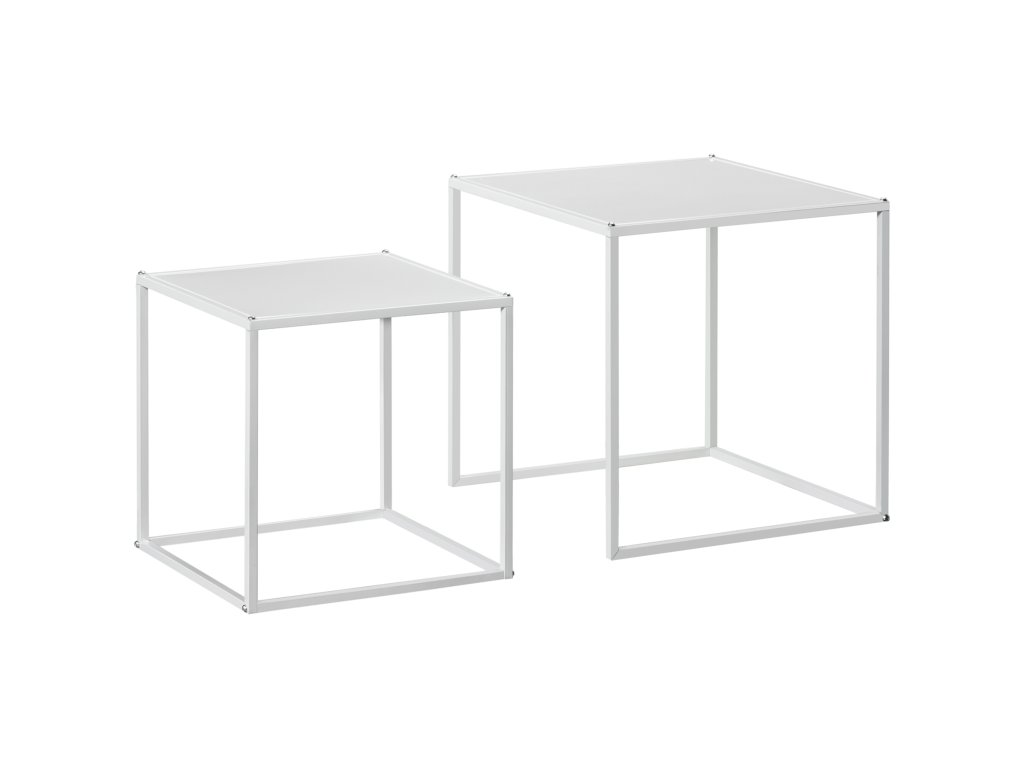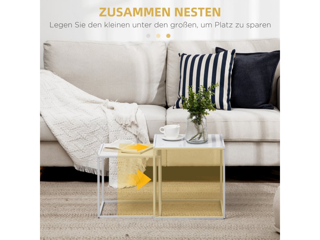 HOMCOM Sada odkládacích stolků, moderní odkládací stolky, úspora místa, robustní ocelový rám, bílá barva