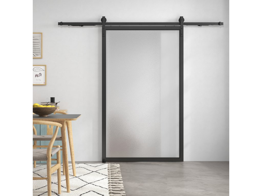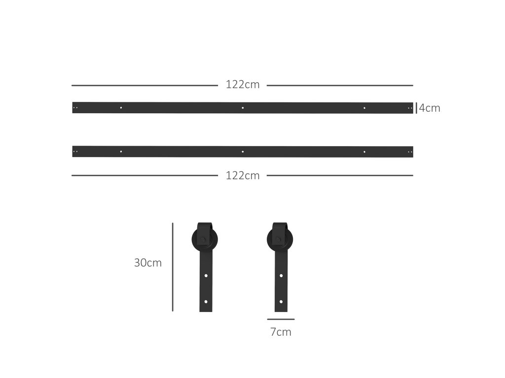 HOMCOM Sada posuvných dveří, tichý a hladký chod, pro dřevěné a cementové stěny, 244 cm, ocel, černá