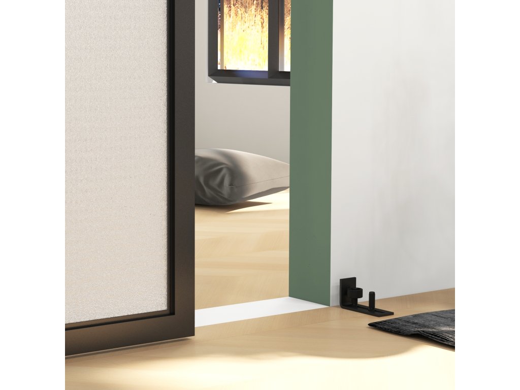 - Inovativní systém dveřních nárazníků: Tato sada kování pro posuvné dveře obsahuje dva dveřní nárazníky, které lze namontovat bez vrtání. Chrání vaše stěny před poškozením a snižují hluk při otevírání a zavírání dveří