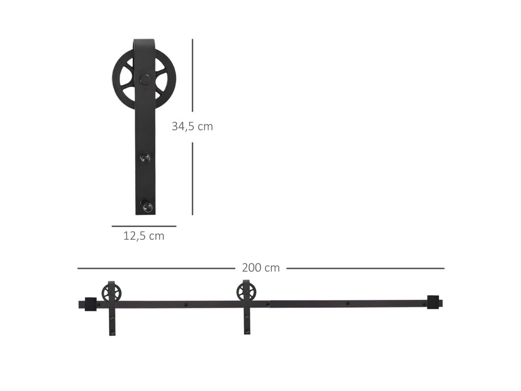 HOMCOM Sada posuvných kolejnic pro posuvné dveře, rustikální design, uhlíková ocel, 200x4x0,6 cm, do 90 kg, černá barva
