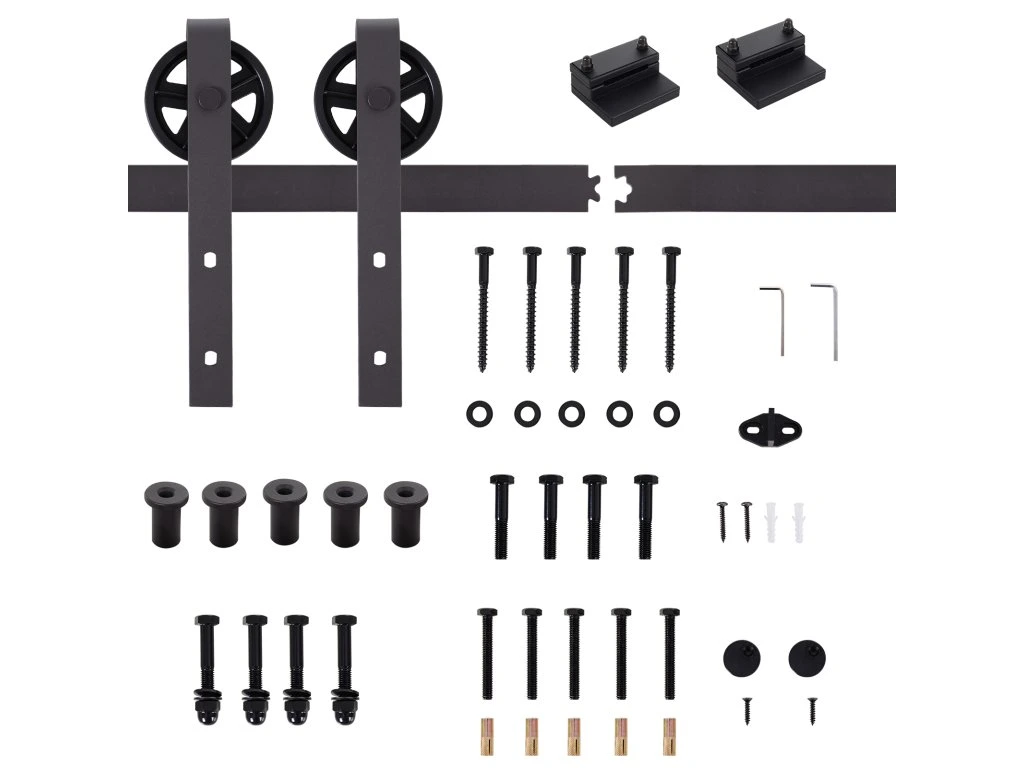 Dodejte svému domovu jedinečný nádech s touto vynikající sadou kování pro posuvné dveře HOMCOM. Vyměňte klasické dveře za moderní a funkční posuvný model. Lze instalovat do různých místností, od ložnic po kuchyně a chodby. Tento systém posuvných dveří je vyroben z robustní uhlíkové oceli a unese i těžké dveře. Lze instalovat na dřevěné nebo betonové stěny. Dveře nejsou součástí dodávky.
