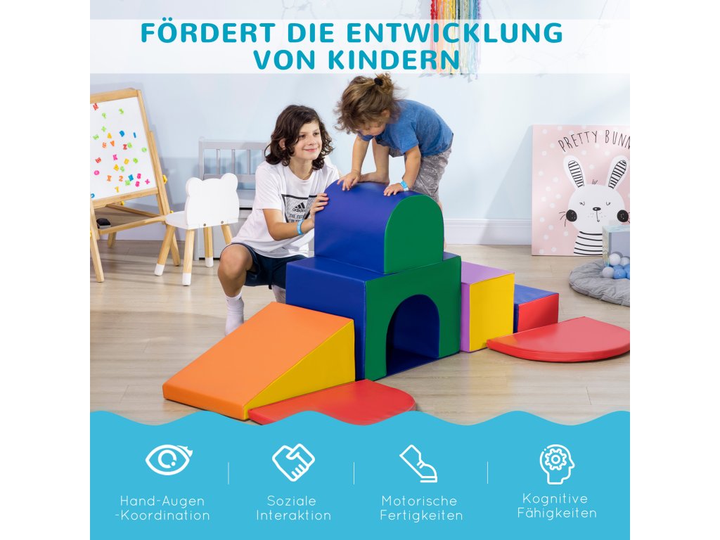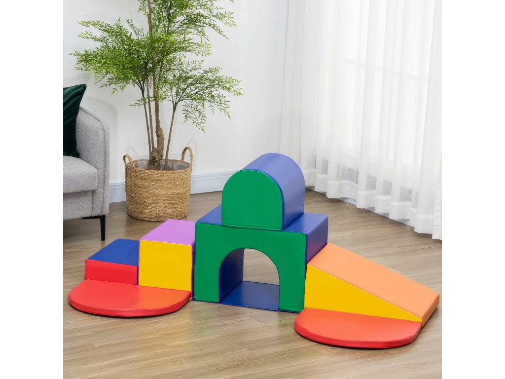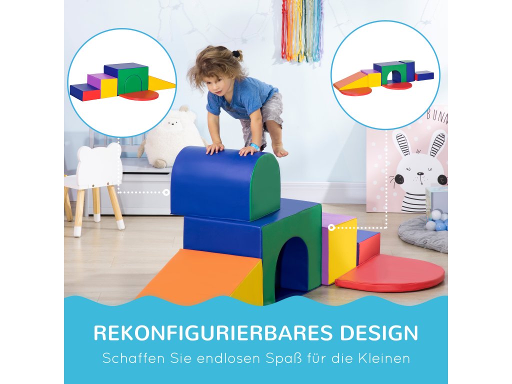 HOMCOM Sada stavebnic Juice pro děti, pěnové bloky, čtvercové, schody, rampa, umělá kůže, vícebarevné