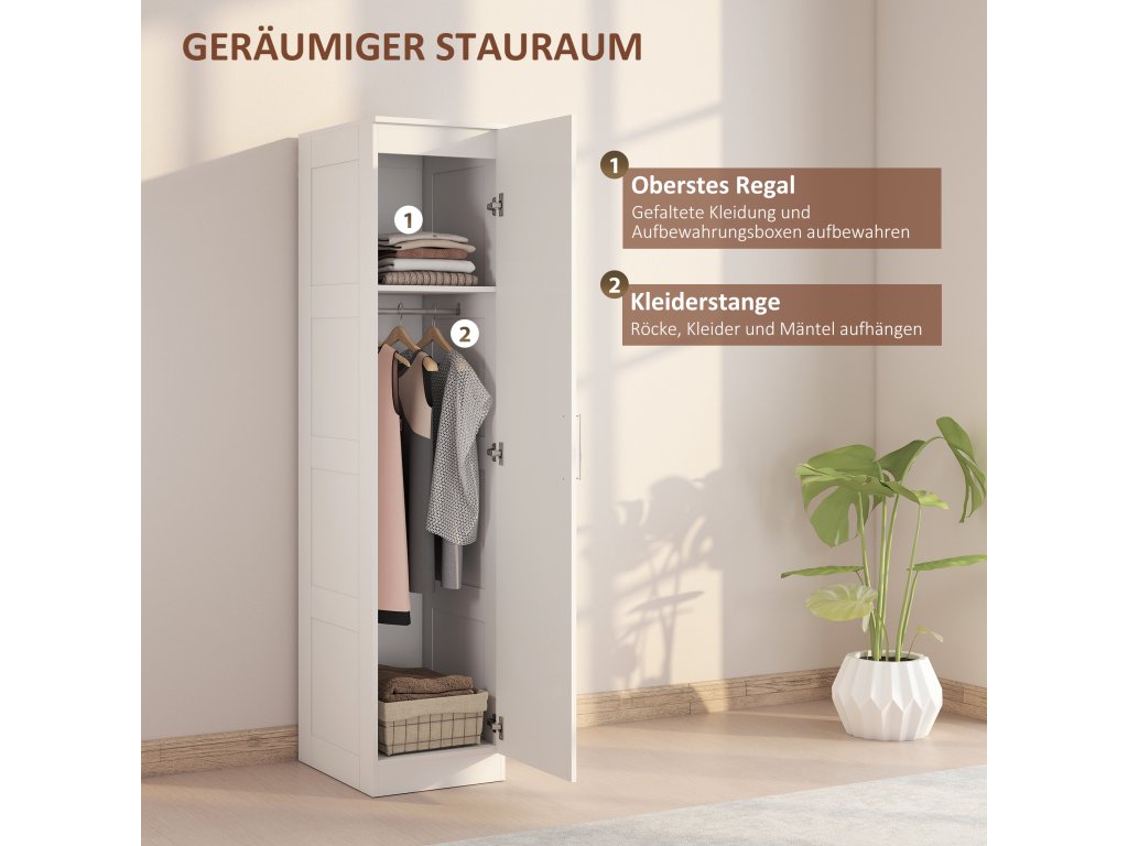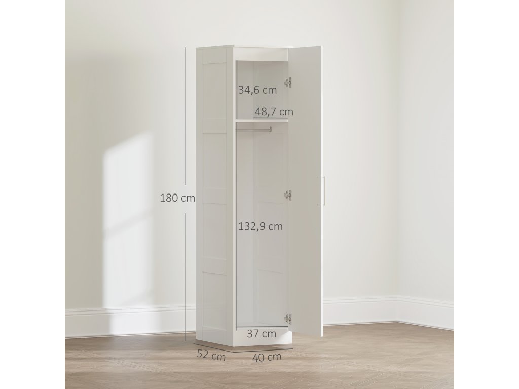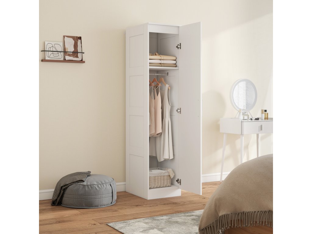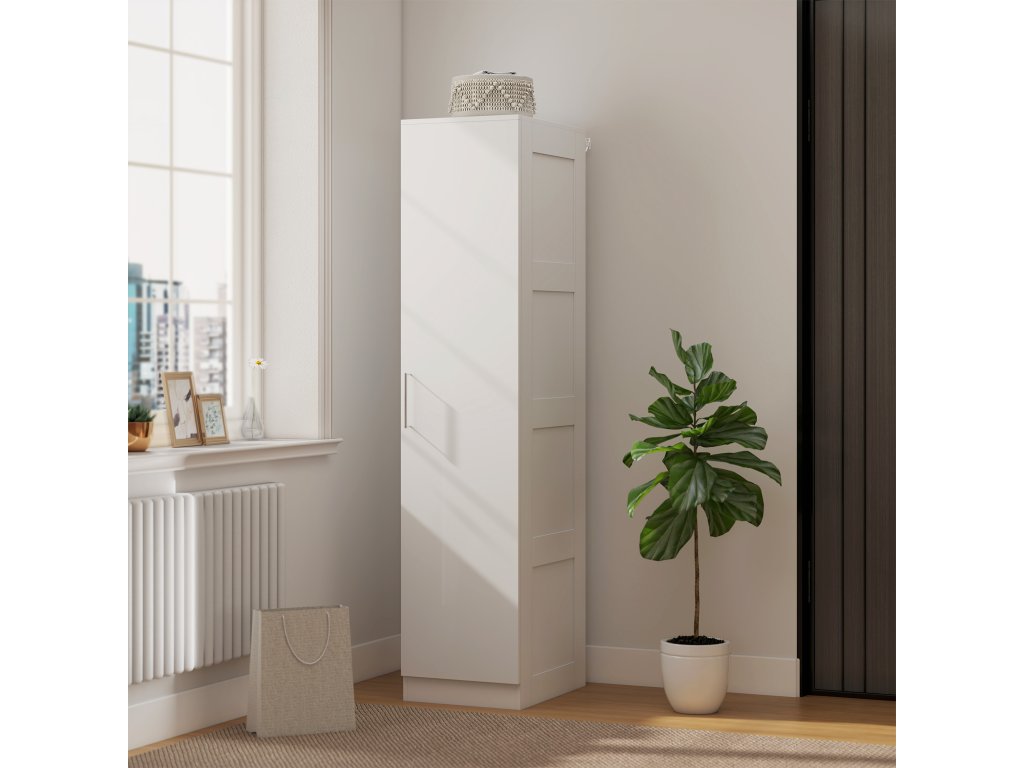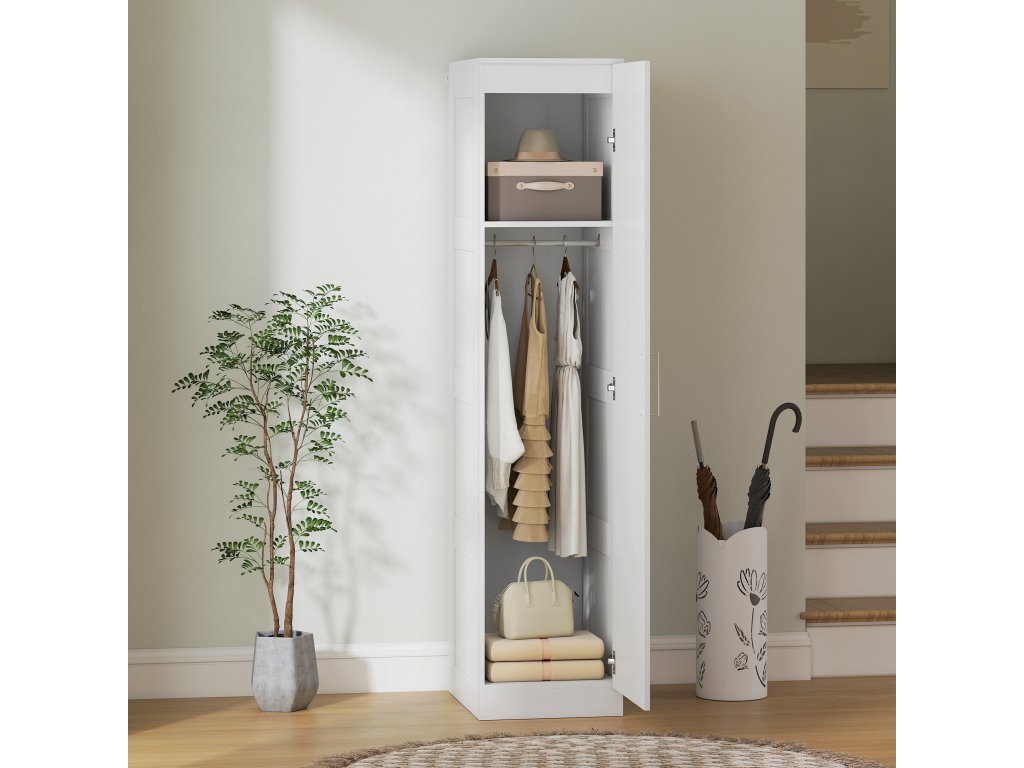 Šatní skříň do ložnice HOMCOM promění úzké prostory v praktický úložný prostor. Díky šířce pouhých 40 cm se rohová šatní skříň skvěle hodí do malých bytů nebo předsíní. Měkké zavírání dveří zajišťuje tichá úchytka, která vytváří pohodovou atmosféru pro vaši rodinu, a sada proti vyklopení poskytuje dodatečnou bezpečnost. Stylová, promyšlená předsíňová skříň, která nabízí funkčnost.