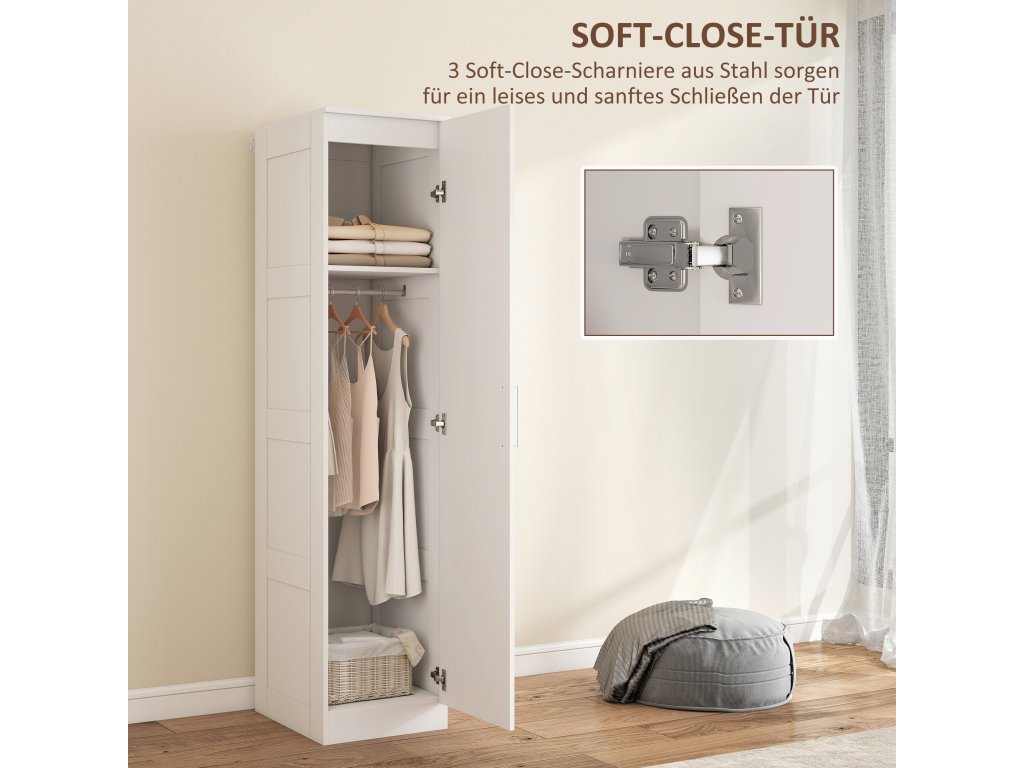 HOMCOM Šatní skříň Víceúčelová šatní skříň s tyčí na oděvy, policemi, dveřmi s tichým dovíráním 40 x 52 x 180 cm Bílá