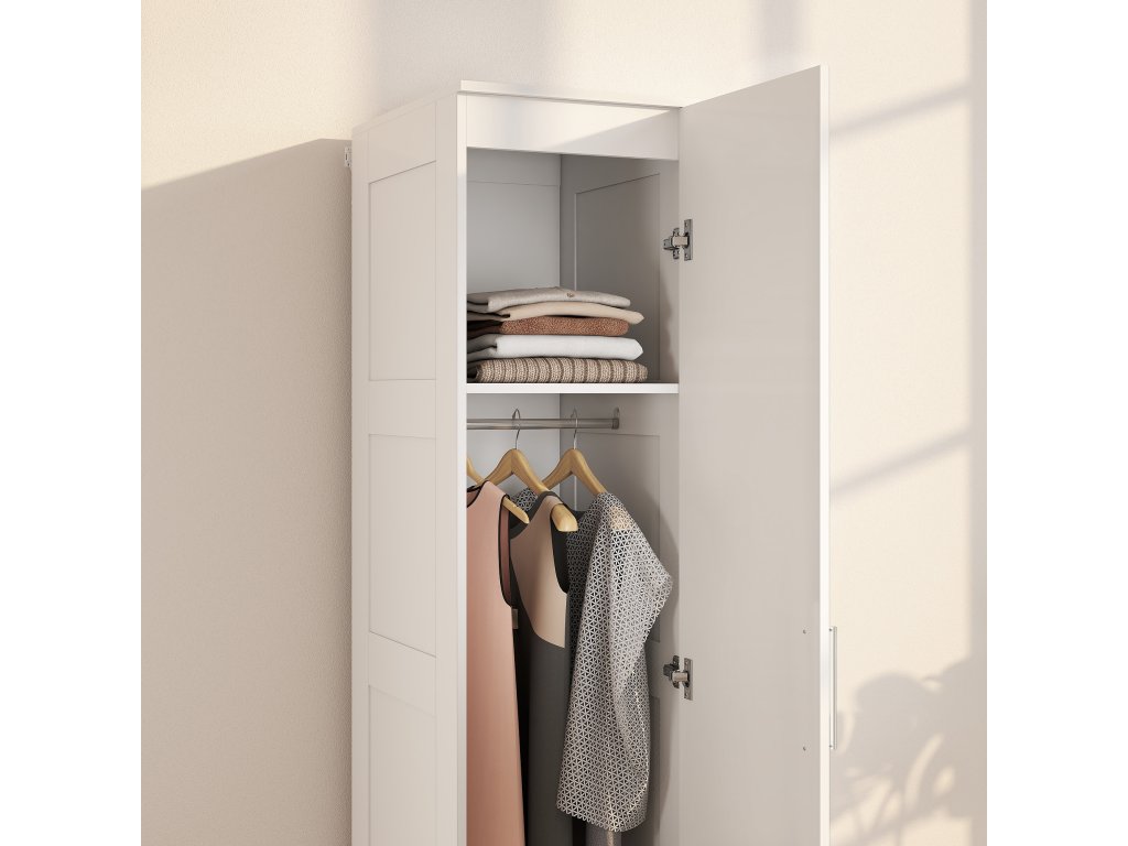 - Prostorově úsporný design: Díky šířce pouhých 40 cm se skříň s výklopnými dveřmi dokonale hodí do malých prostor, což je ideální pro městské byty, pokoje pro hosty nebo úzké chodby, kde se počítá každý centimetr.