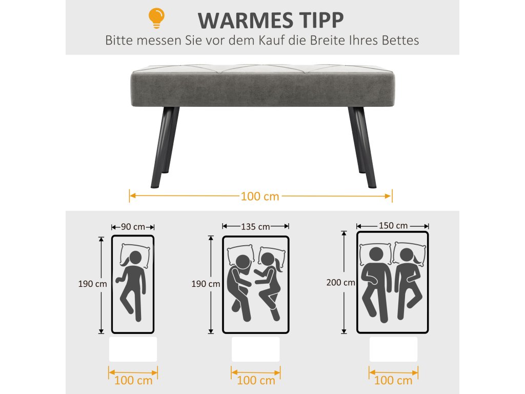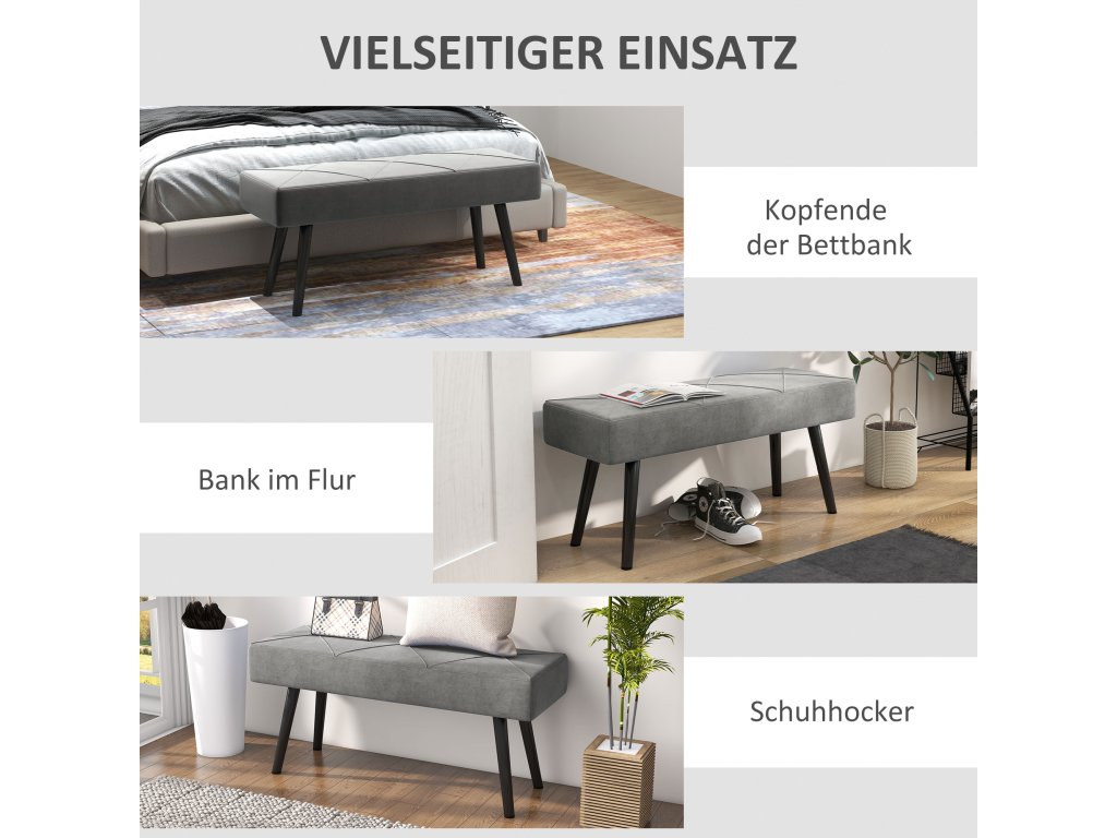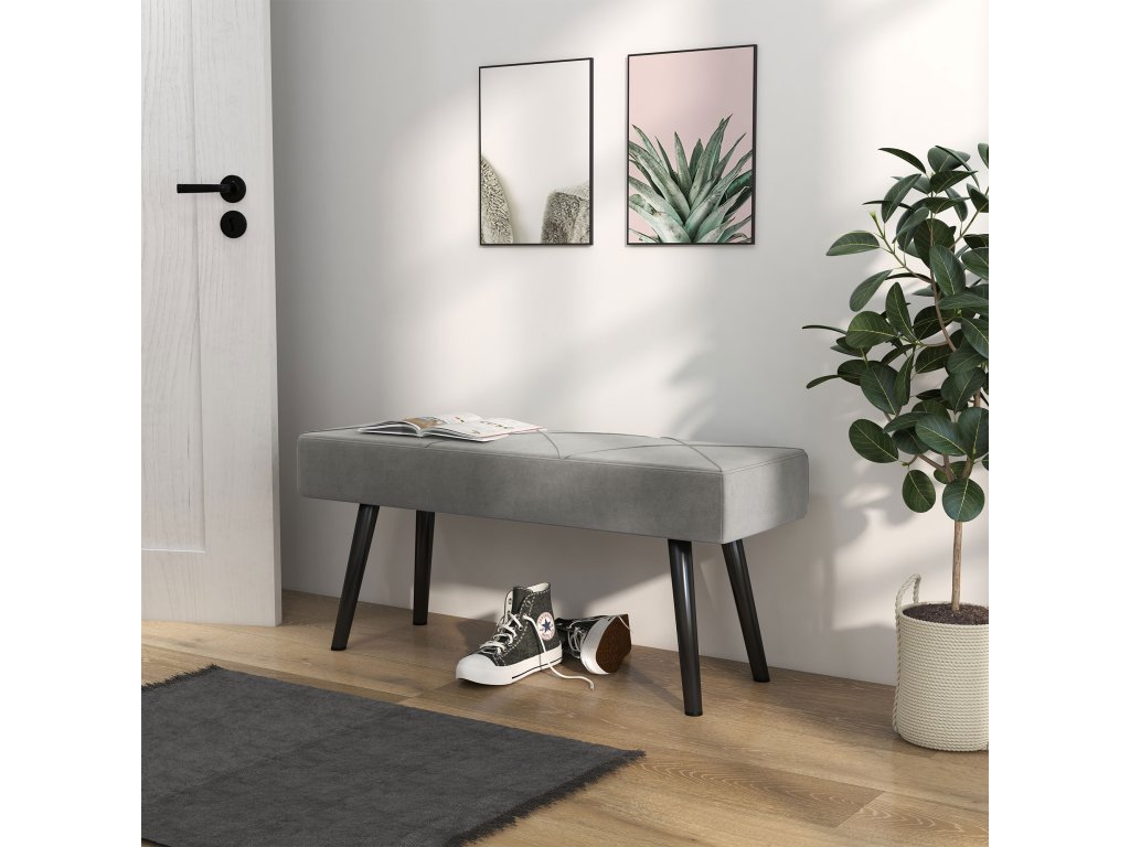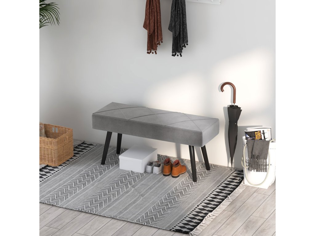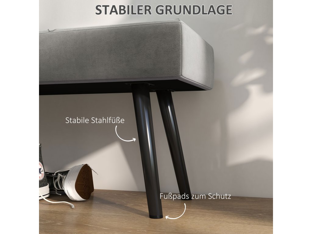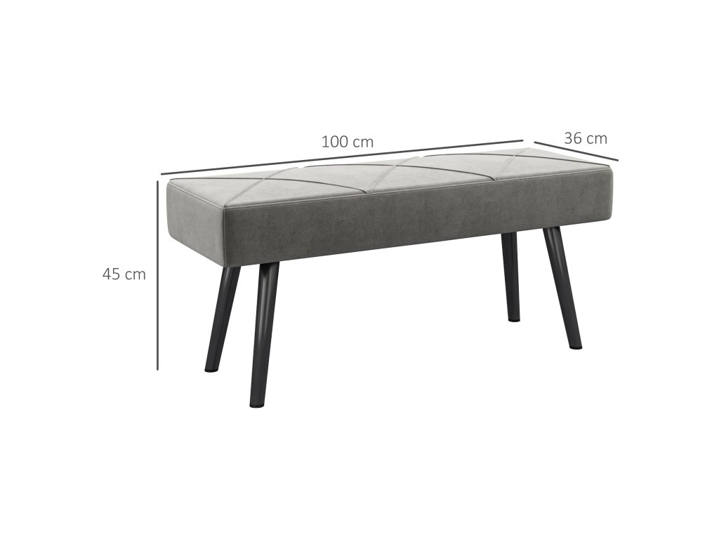 HOMCOM Sedací lavice Čalouněná lavice na spaní, sametový vzhled, 100 x 36 x 45 cm, šedá barva