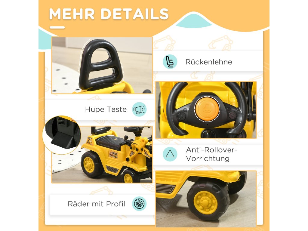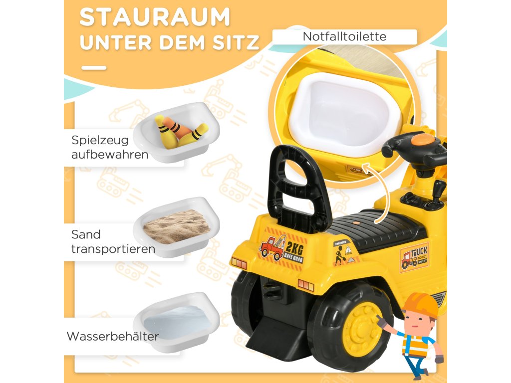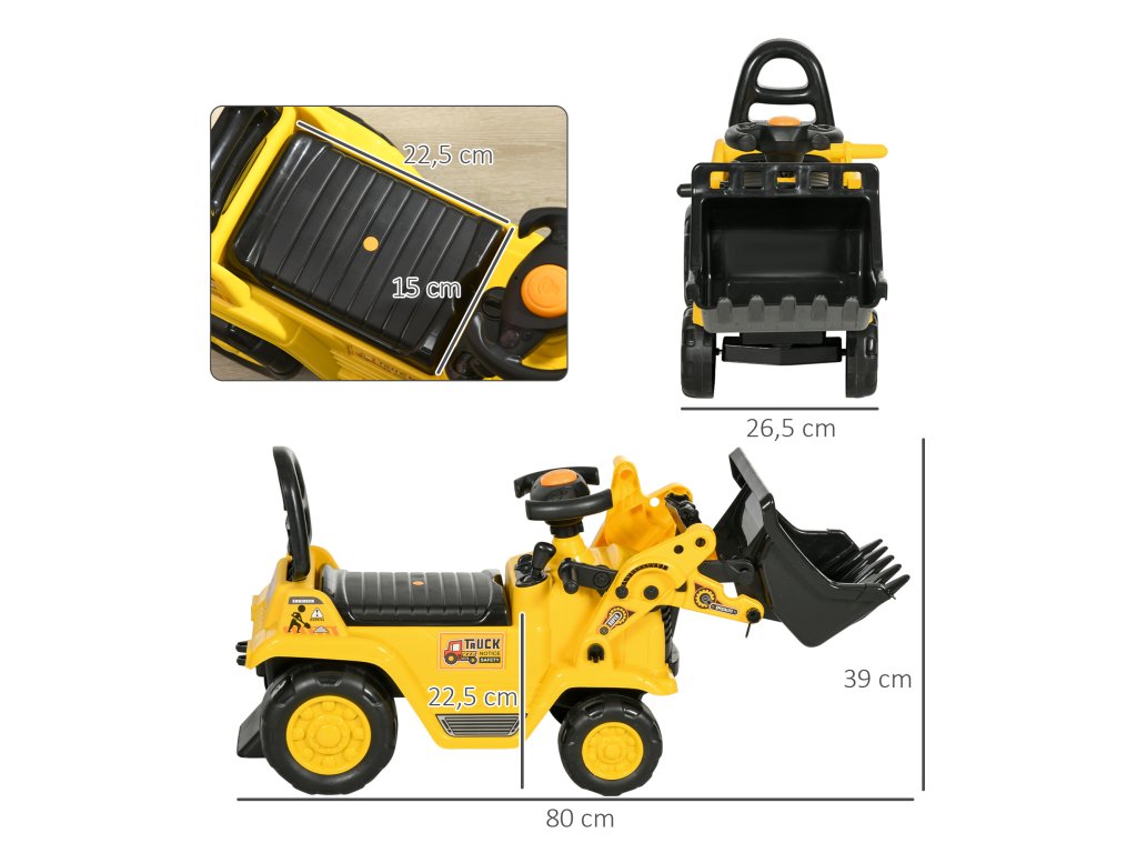 HOMCOM Sedačkový bagr s vestavěným úložným prostorem Dětské jezdící auto Traktor Dětský bagr s klaksonem Klouzací bagr Klouzací vozidlo Balanční kolo Žlutá+černá 80 x 26,5 x 39 cm