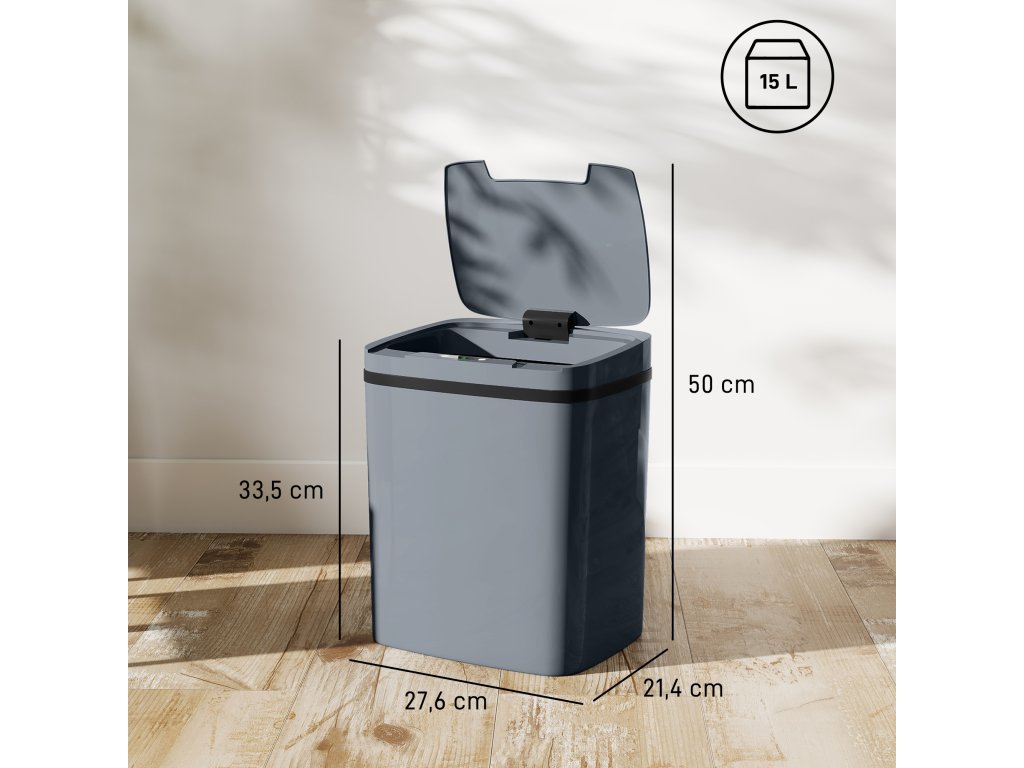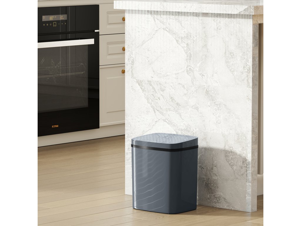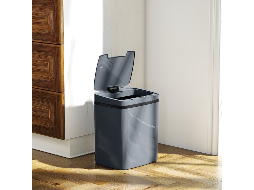 - Moderní minimalistický styl: Tento odpadkový koš se senzorem v elegantní šedé barvě a s přímočarým designem dokonale zapadne do každého moderního interiéru. Díky svému povrchu, který minimalizuje otisky prstů, zůstane vždy bez poskvrny.