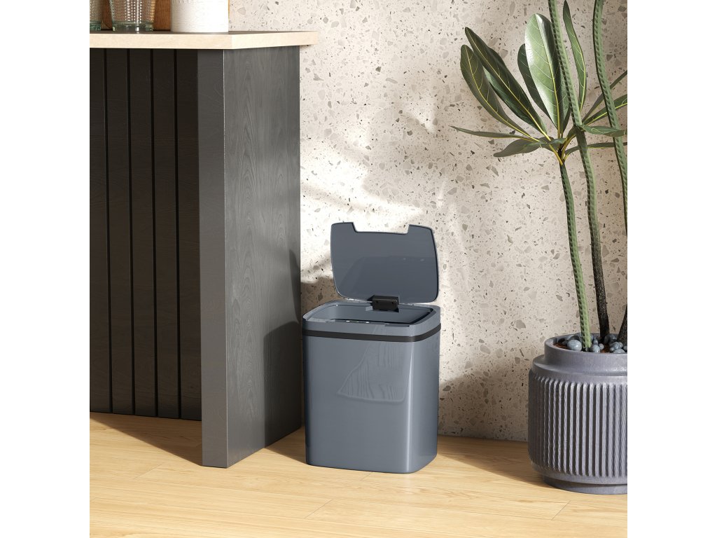 HOMCOM Senzorový odpadkový koš 15 l Automatický odpadkový koš se dvěma režimy otevírání, pro kanceláře, kuchyně, 27,6 x 21,4 x 33,5 cm, šedý