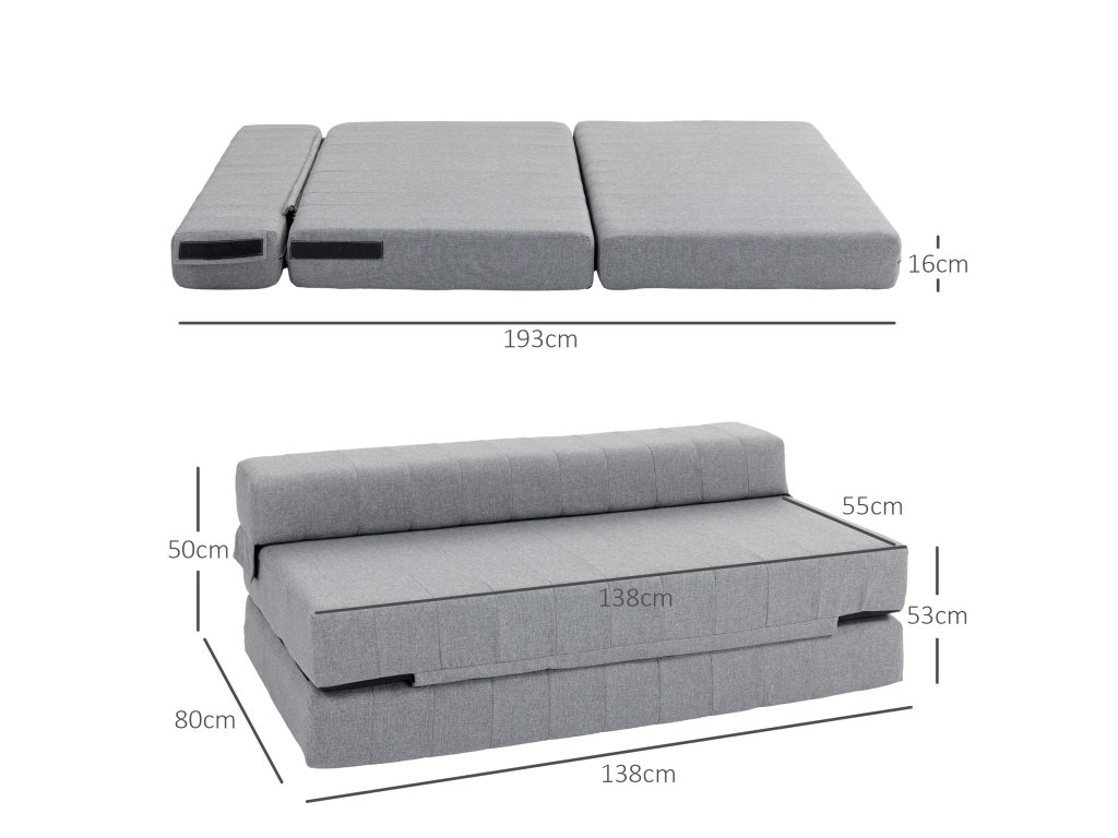 HOMCOM Skládací křeslo s funkcí lůžka, lůžko pro hosty, skládací, do 250 kg, 138x80x50 cm, šedá barva