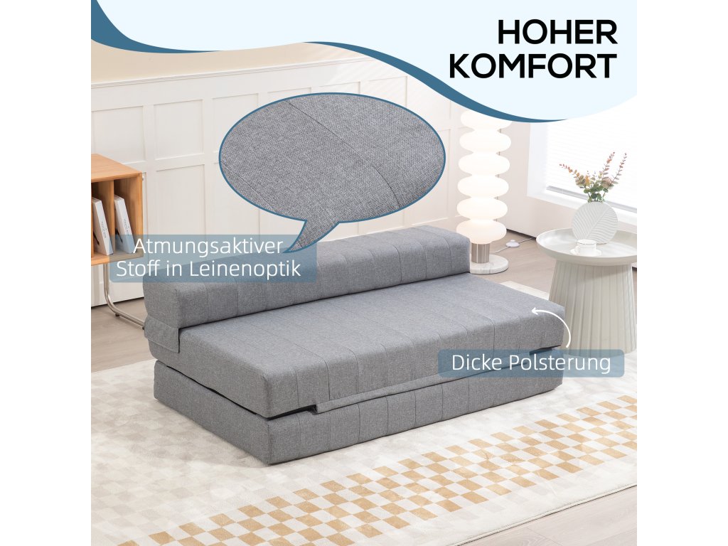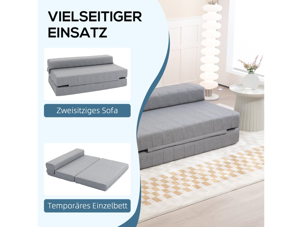 Multifunkční: Naše rozkládací pohovka je všestrnný kus nábytku - slouží jako dvoumístná pohovka pro další sezení a jako pohodlná matrace pro jednu osobu, ideální pro přespání hostů nebo pro odpočinek
