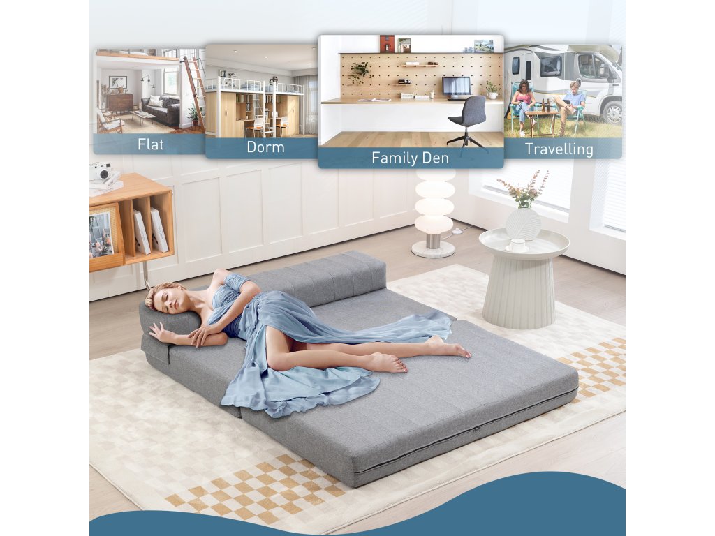 Prostorově úsporná a přenosná: Tuto pohovku s funkcemi Spanish lze bez námahy složit a kompaktně uložit, takže se dokonale vejde do rohů a ideálně dostupný prostor. Myšlenka bytů, studentských kolejí, rodinných pokojů nebo na cesty