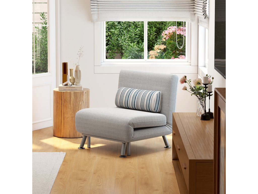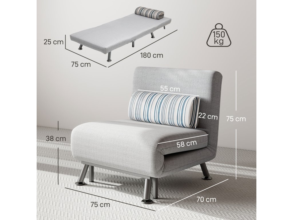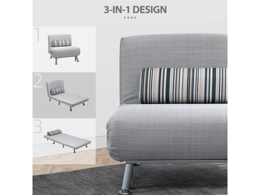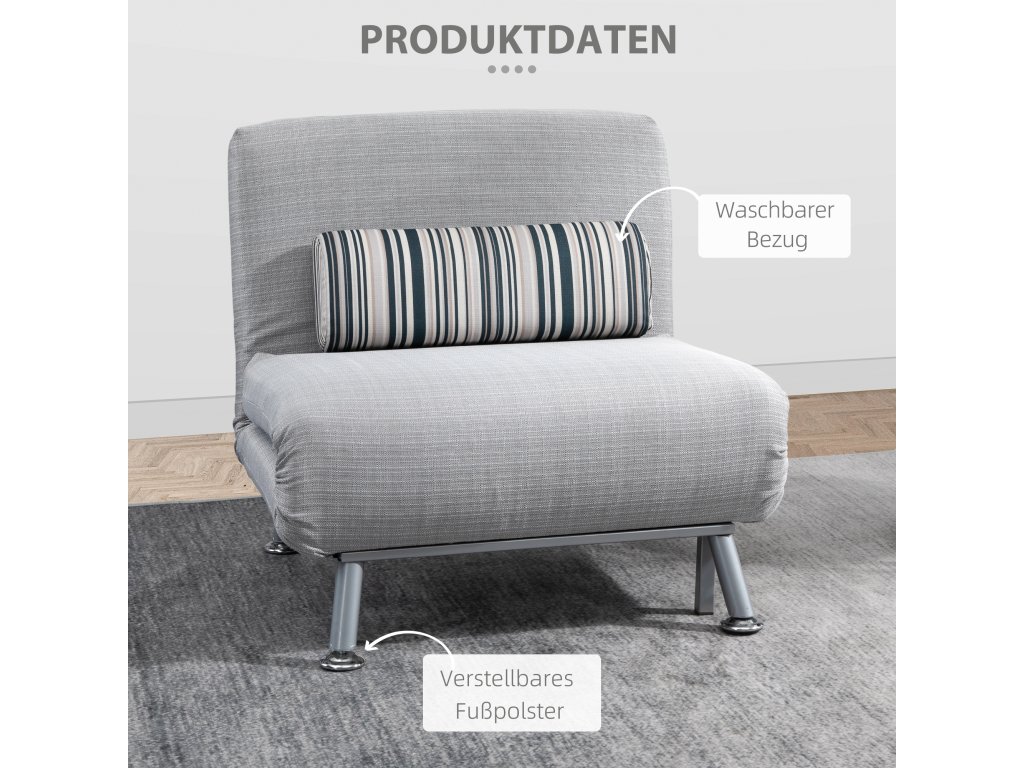 HOMCOM Skládací křeslo s funkcí lůžka, skládací lehátko v plátěném vzhledu, nastavitelná opěrka zad, 75 x 70 x 75 cm, šedá barva