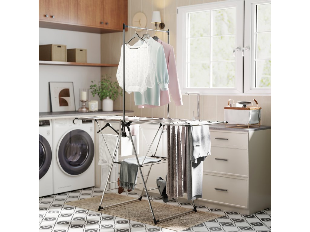 - ✔ Rám sušáku na prádlo je vyroben z robustní nerezové oceli a unese až 15 kg prádla