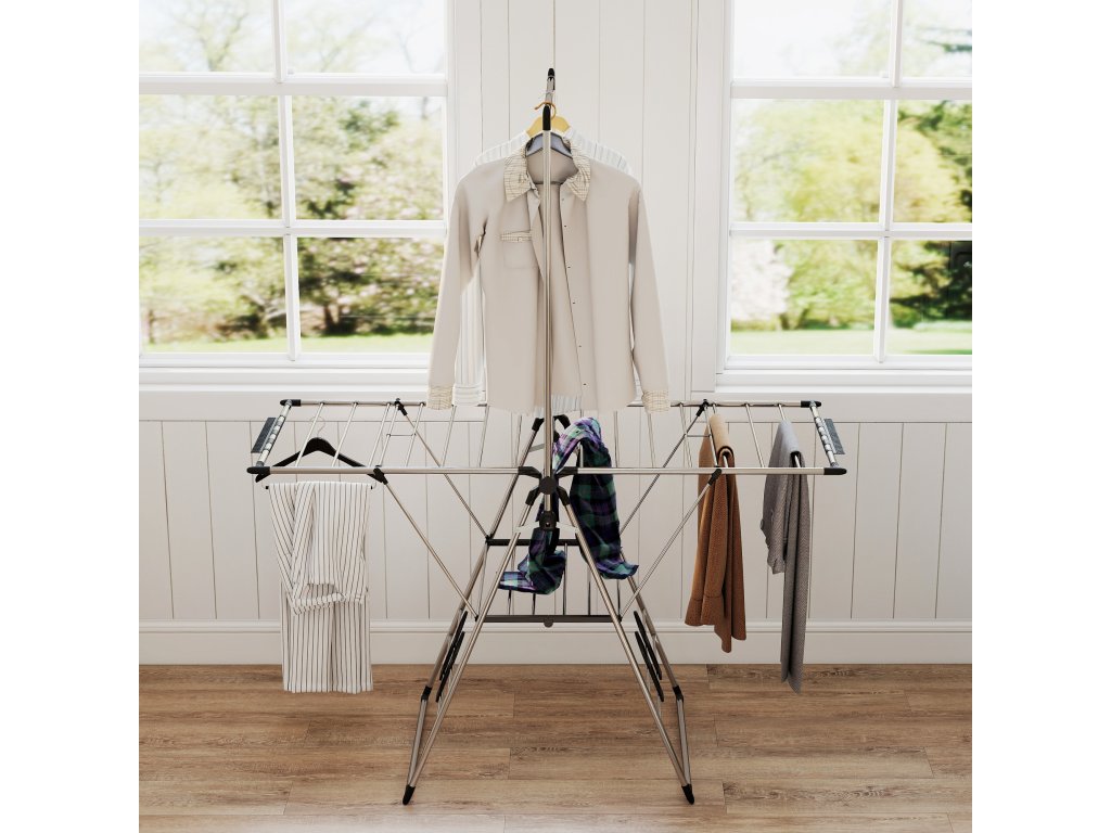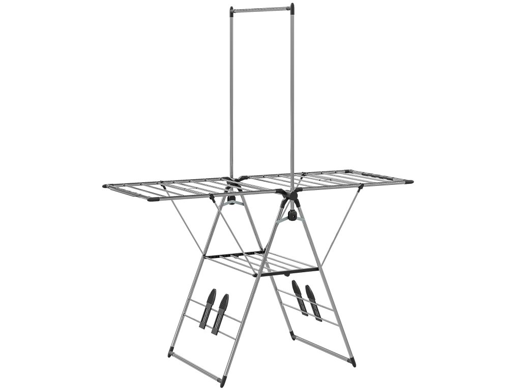 - ✔ Křídla sušáku lze nastavit do čtyř různých výšek, což je ideální pro sušení dlouhého prádla
