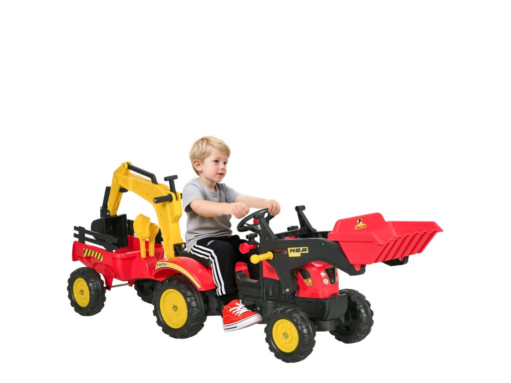 - Autentický zážitek z jízdy: Tento bagr v sedě nabízí autentický zážitek z jízdy a umožňuje dítěti jezdit dopředu nebo dozadu pomocí pedálů.