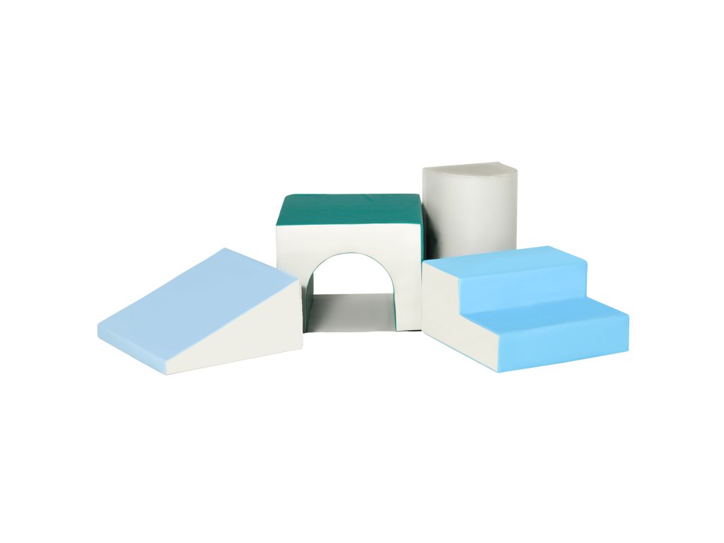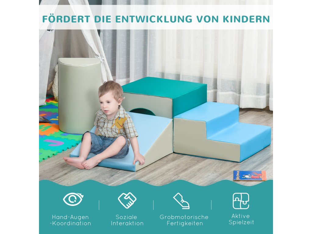 HOMCOM stavebnice sada 4 pěnových stavebnic snadno čistitelné pěnové kostky s měkkou výplní pro děti od 1 do 3 let EPE světle šedá+modrá+zelená 150 x 50 x 39 cm