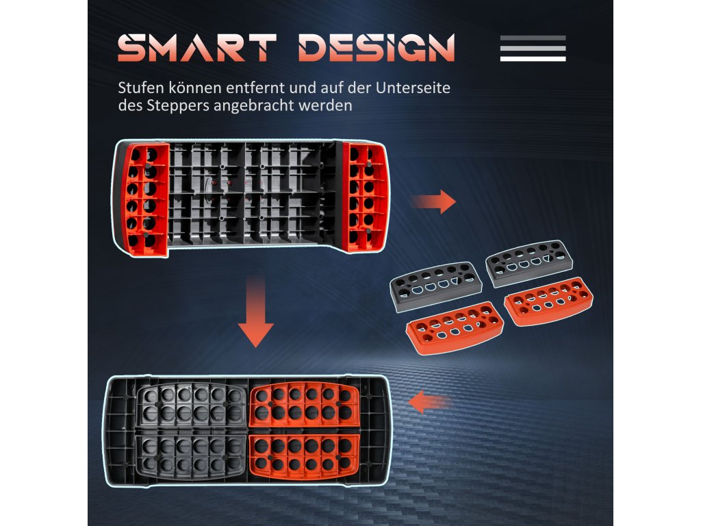- Chytrý design: Nohy lze odejmout a umístit na spodní stranu stepperu, díky čemuž je skladování obzvláště úsporné.