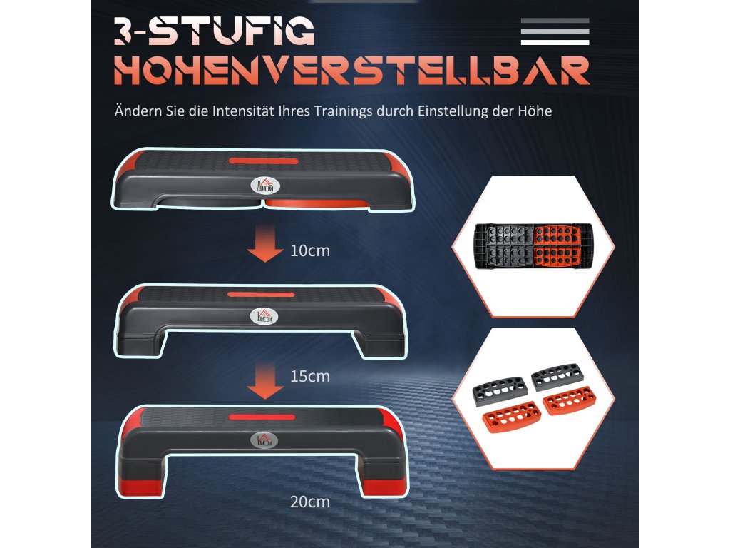 HOMCOM Stepper výškově nastavitelný stepper pro aerobic, červený + černý