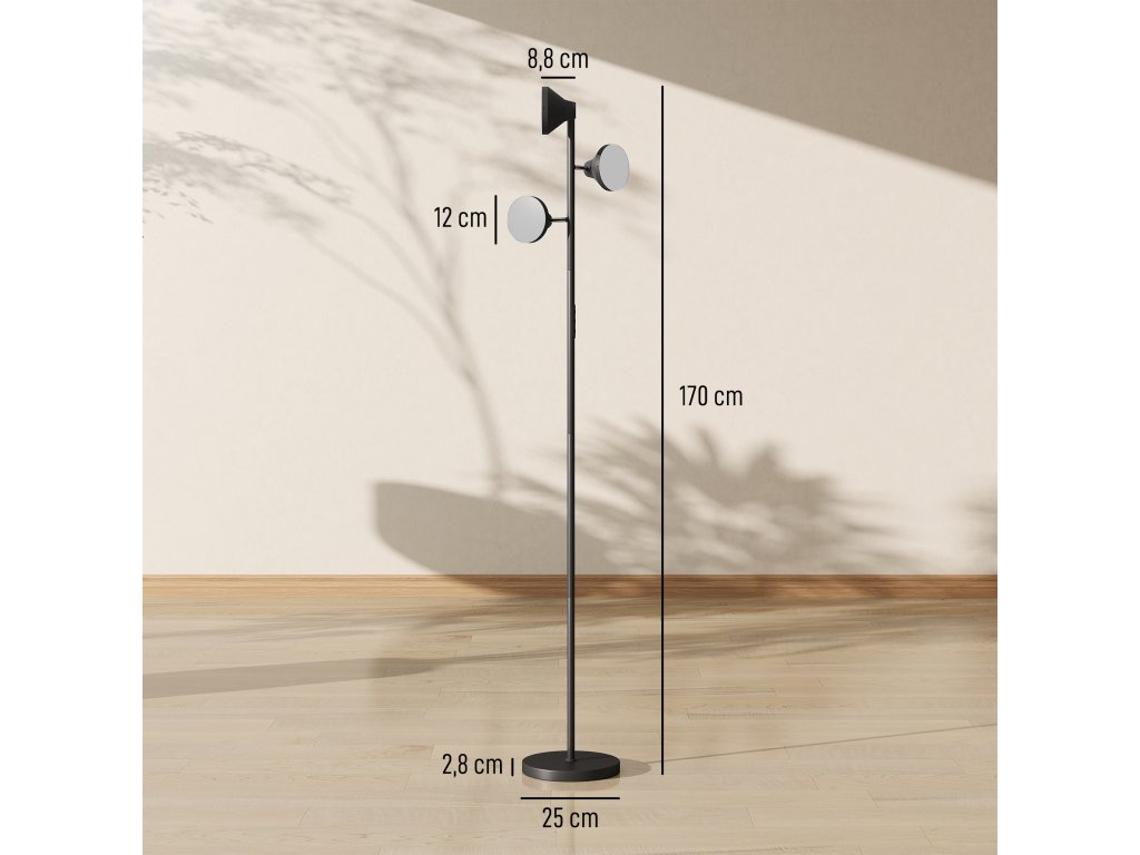 - Informace o výrobku: Celkové rozměry stmívatelné stojací lampy: Ø25 cm x 170V cm. Rozměry podstavce: Ø25 cm x 2,8V cm. Jedna osoba ji smontuje za méně než 15 minut.