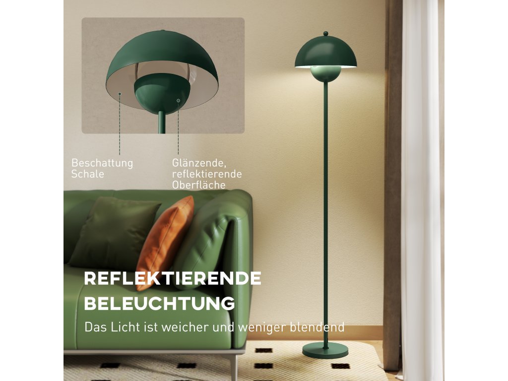 HOMCOM Stojací lampa, kulaté stínítko, nožní vypínač, dlouhý kabel, elegantní vzhled, ocel, zelená barva