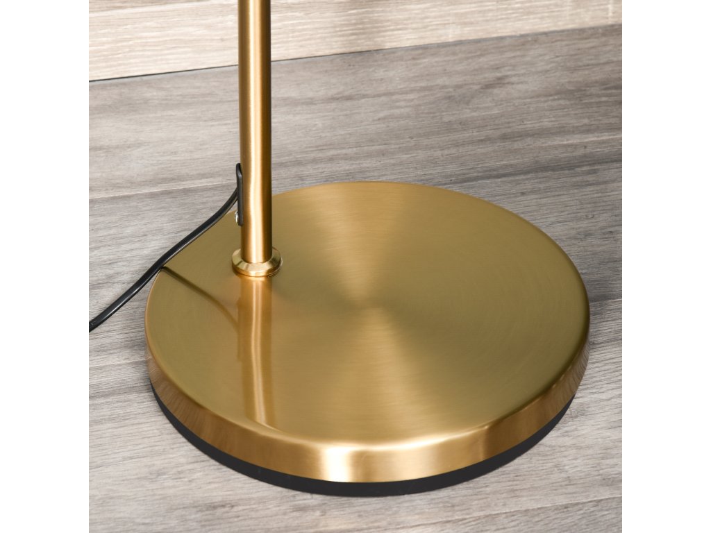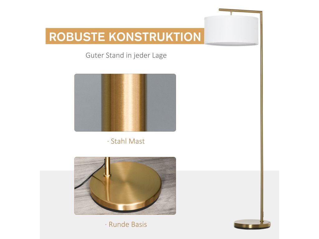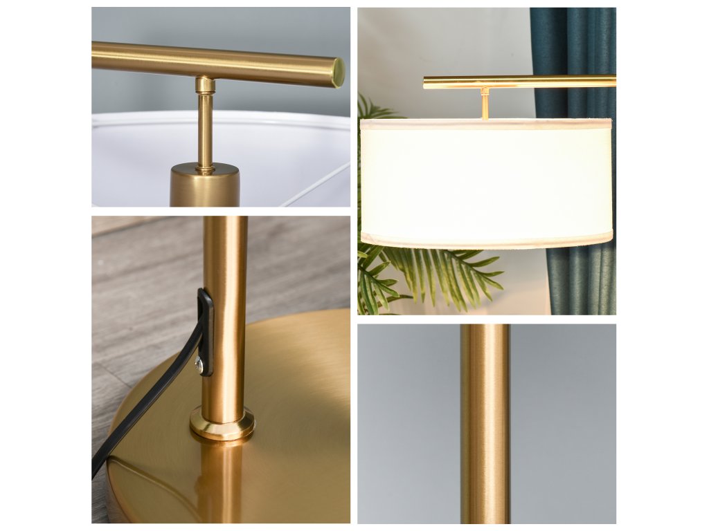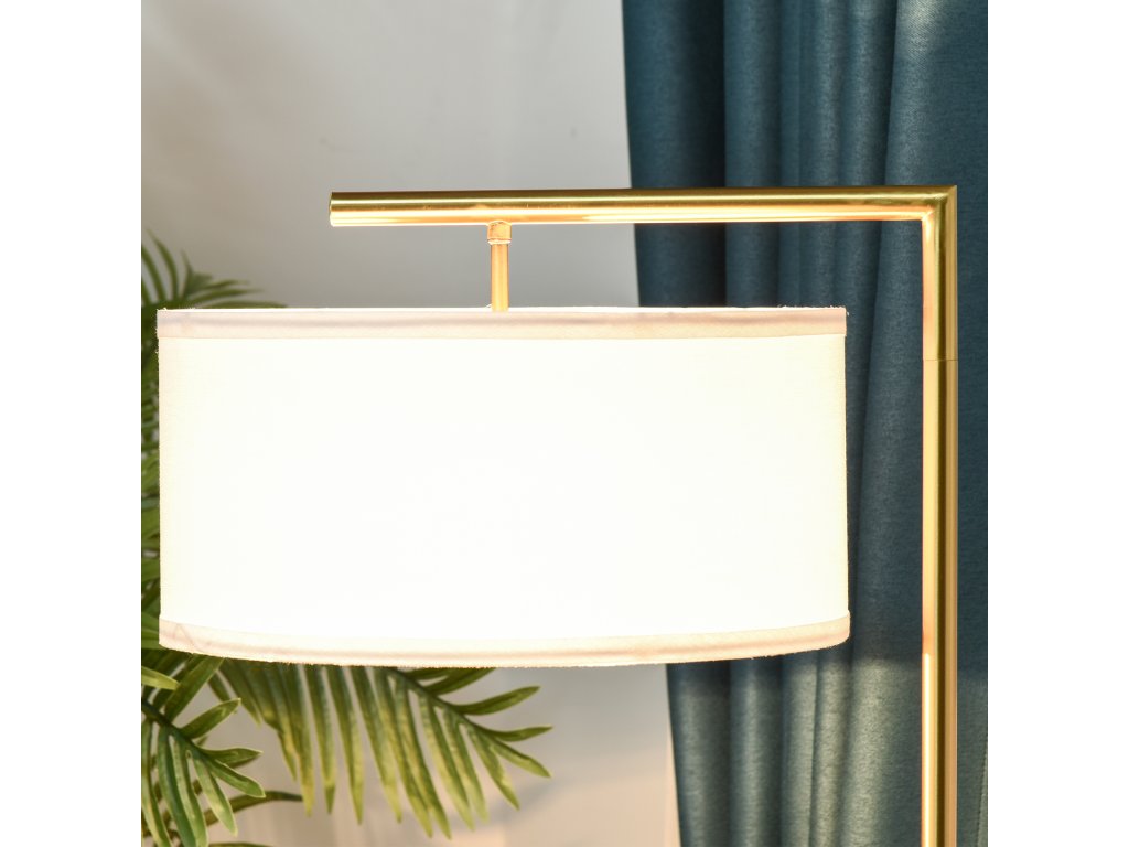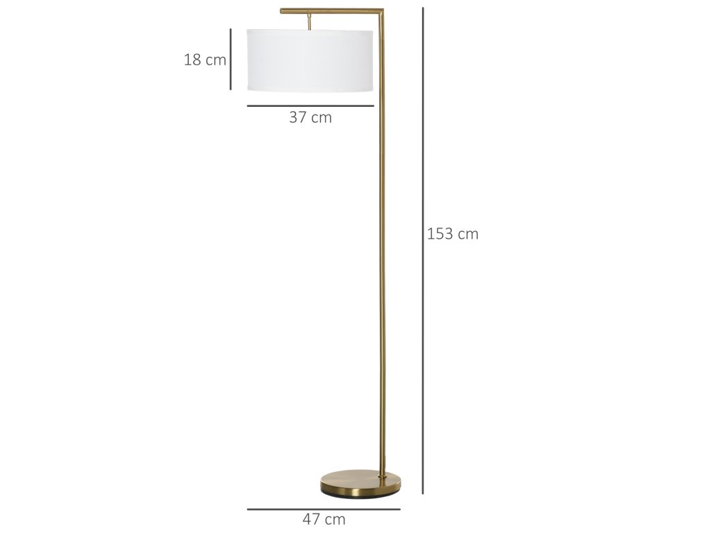 HOMCOM Stojací lampa, patice E27, zlatý vzhled, bílé látkové stínítko, nožní vypínač, ocel, 47 x 37 x 153 cm