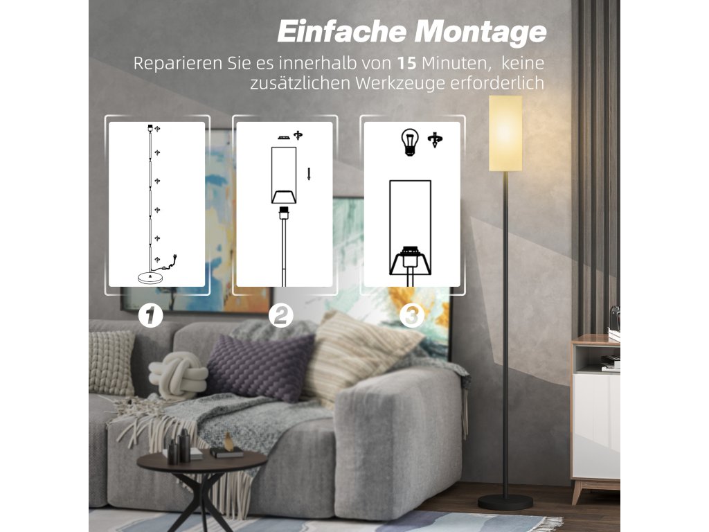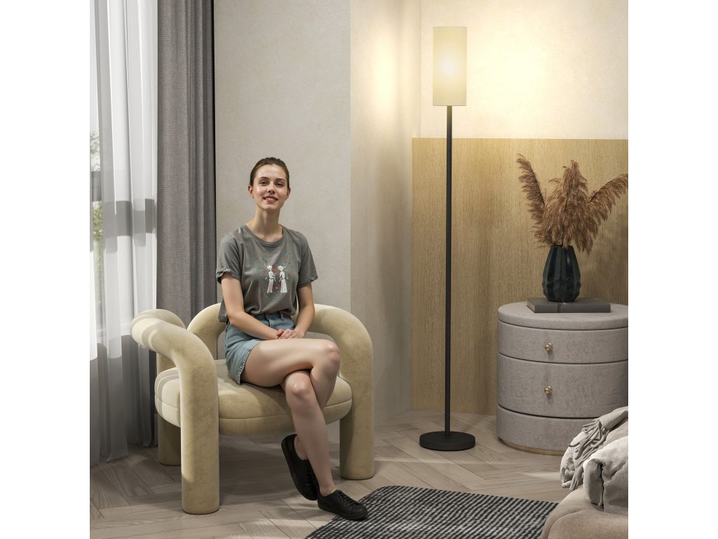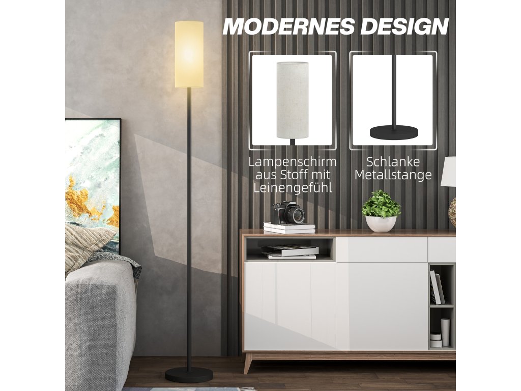 HOMCOM Stojací lampa, stínidlo ve vzhledu lnu, kovová tyč, nožní vypínač, bílá barva