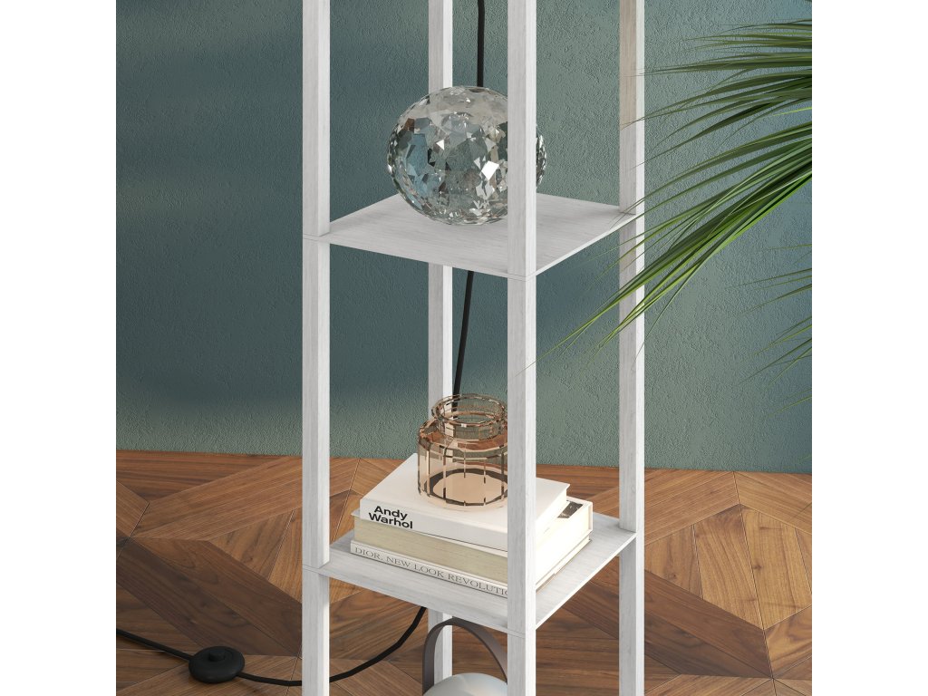 - Praktický úložný prostor: Tři otevřené přihrádky na stojací lampě nabízejí dostatek prostoru pro knihy, rostliny a dekorace ve stylovém uspořádání