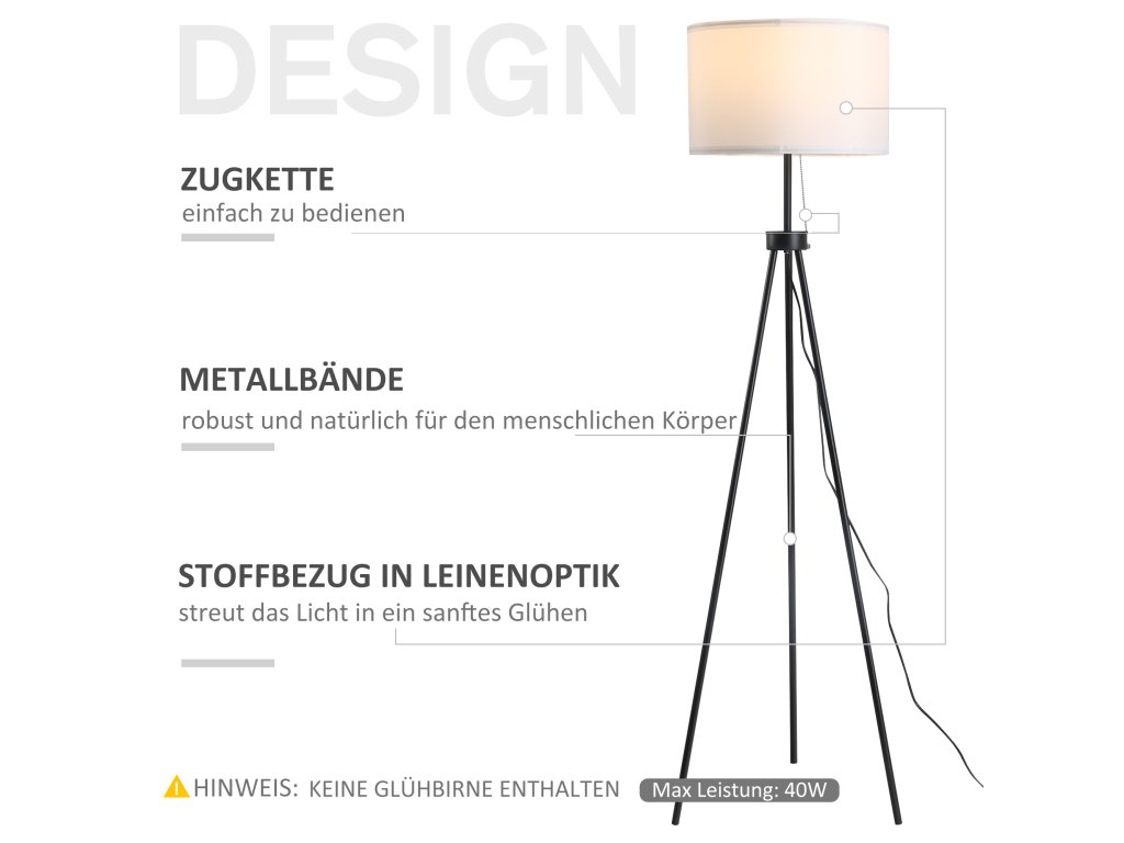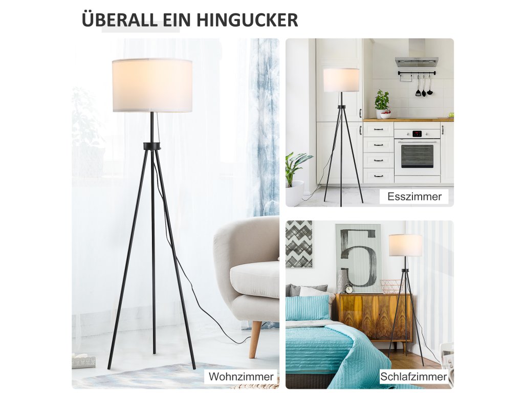 HOMCOM Stojací lampa Stojací lampa E27, ocel+polyester, 37x37x152cm (černá+bílá)