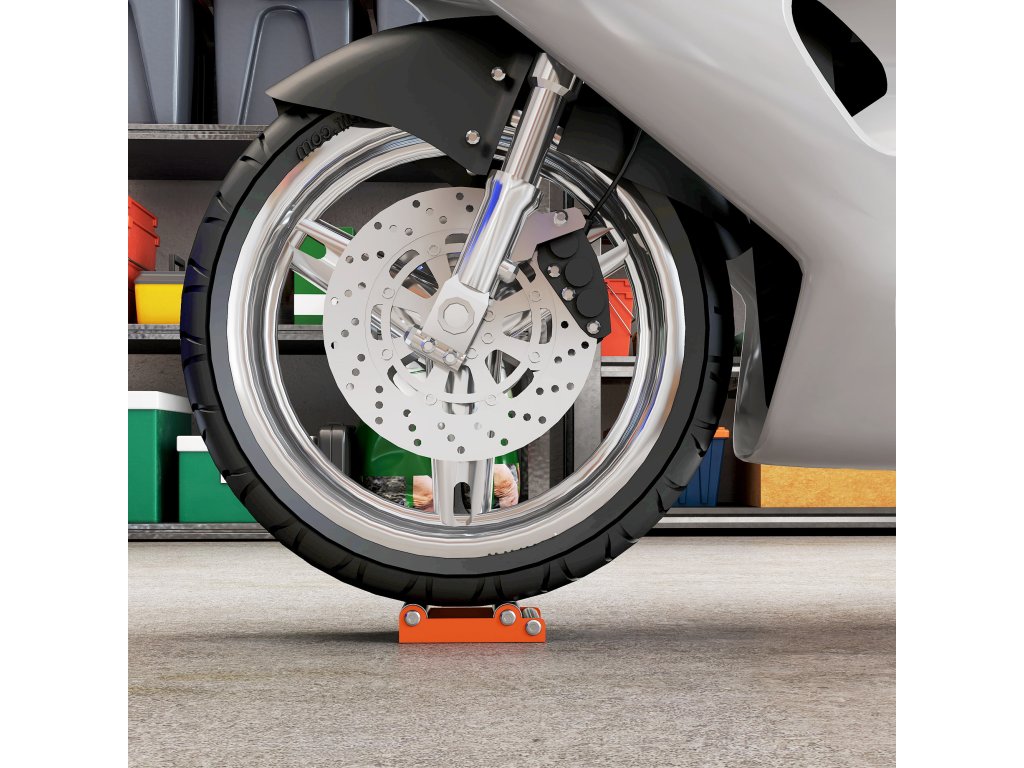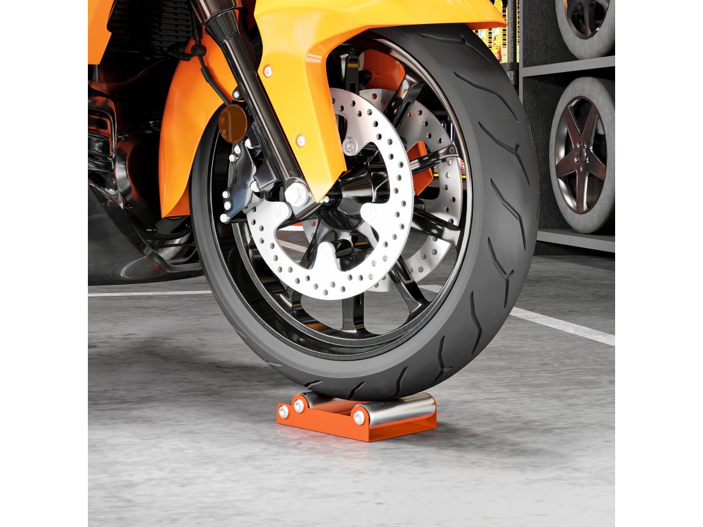 - Včetně rampy: Náš válečkový stojan na kola motocyklů, vybavený válečkovou rampou, umožňuje snadné nakládání a přesné umístění kol.