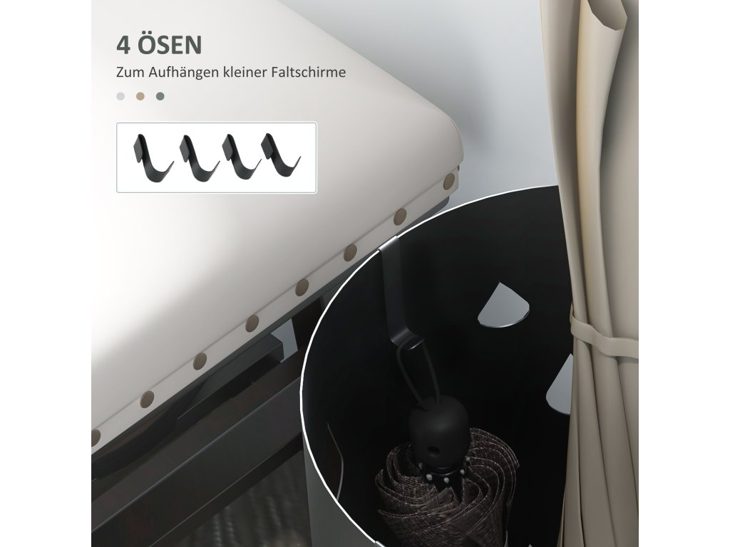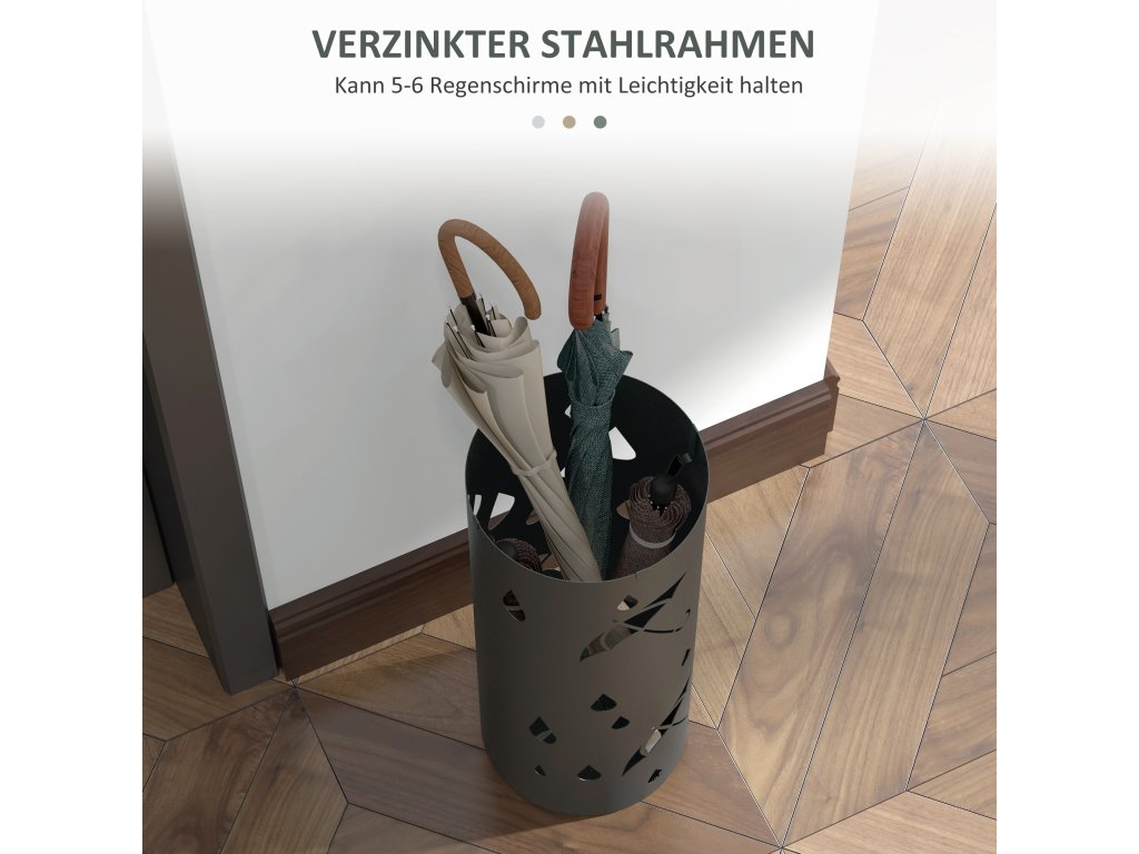 - Pozinkovaná ocelová konstrukce: Koš na deštníky zůstává bezpečně a pevně na svém místě. Je odolný proti korozi a slibuje dlouhou životnost.