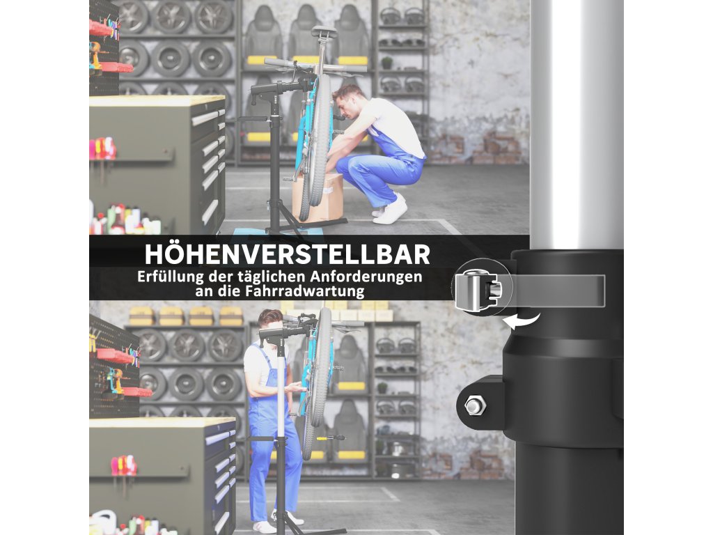 - stojan je vhodný pro pohodlné opravy jízdních kol. ✔ Výšku lze nastavit od 107 do 160 cm