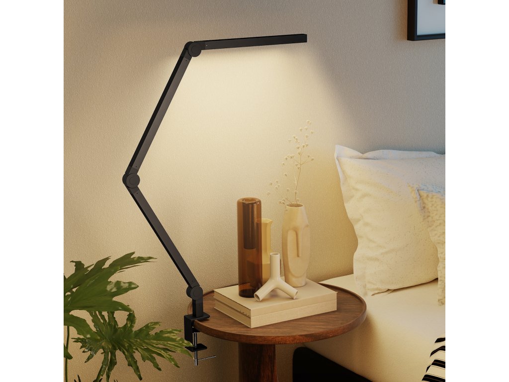 - Sklopná svorka šetřící místo: Svorka upevňuje stolní lampu k okraji stolu a šetří cenné místo. Pokud ji nepoužíváte, lze ji jednoduše sklopit a v případě potřeby vytáhnout zpět do požadovaného úhlu.