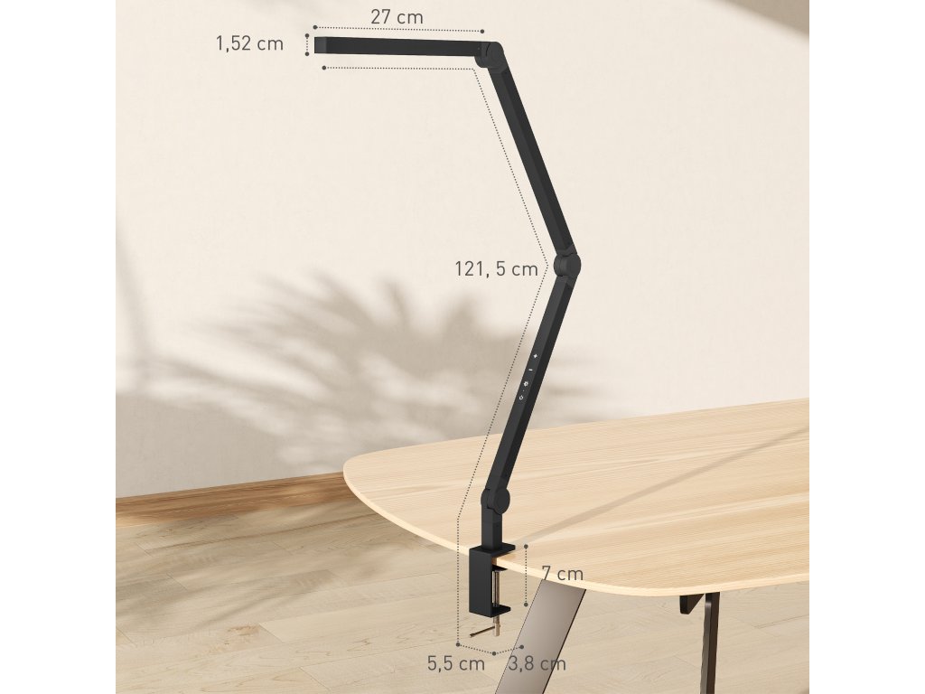 Už se nenamáhejte s přeplněným stolem a nedostatečným osvětlením. Stolní lampa HOMCOM s bezpečnou svorkou a ramenem o délce 1,2 metru vaši sestavu dokonale osvětlí. Jednoduše si dotykem nastavíte jas a teplotu barev, což je ideální pro jakoukoli činnost. Proměňte svůj pracovní stůl v oázu pořádku a flexibilní produktivity.