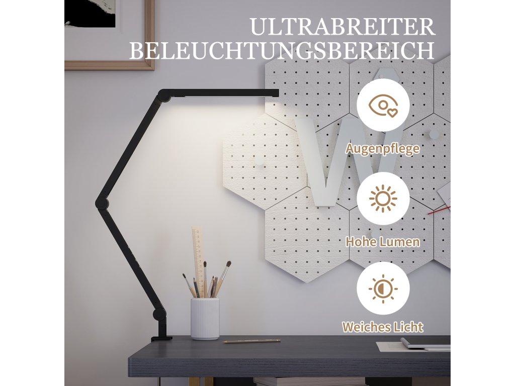 - Široké osvětlení šetrné k očím: Mimořádně dlouhé stínítko a 96 diod LED stolní lampy poskytují měkké světlo bez blikání, které snižuje namáhání očí a zajišťuje pohodlí i při dlouhém čtení.