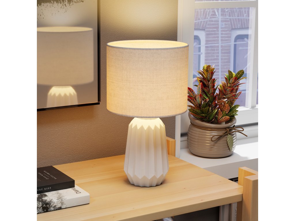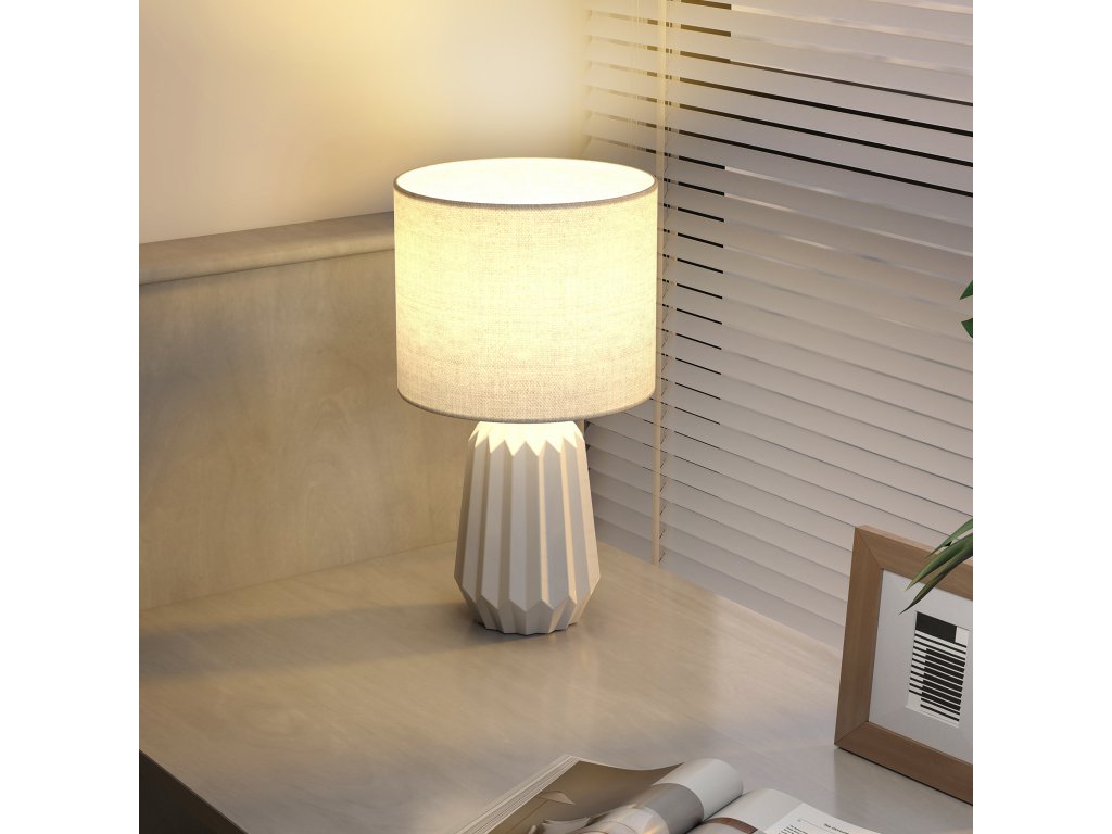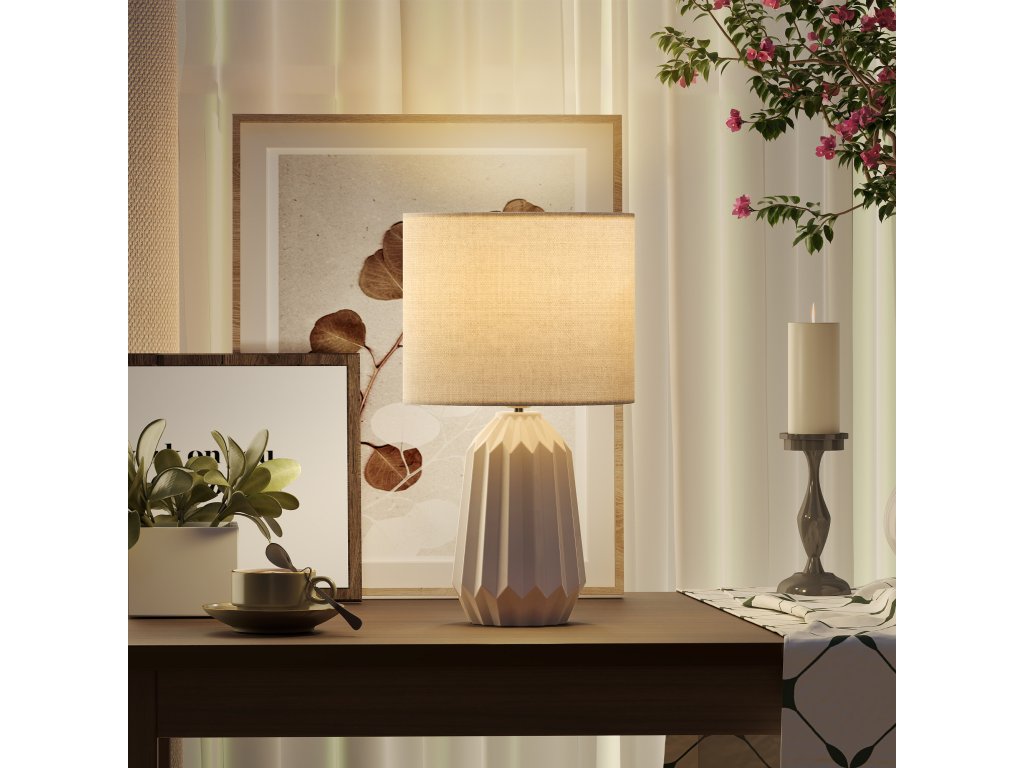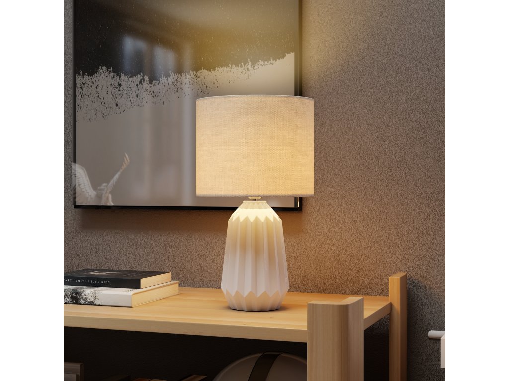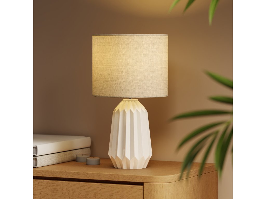 - Design inspirovaný historií: Tato stolní lampa s plisovanou keramickou základnou a bílým plátěným stínidlem nabízí klasický design, který okamžitě dodá eleganci vaší ložnici nebo pracovnímu prostředí.