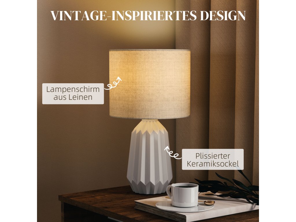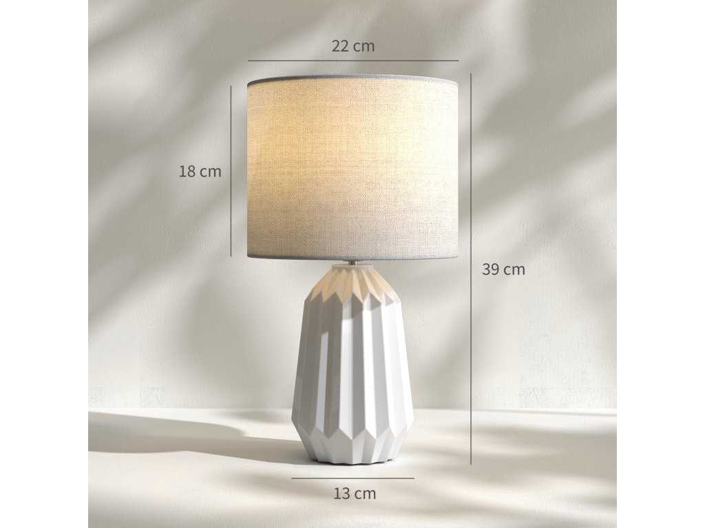 HOMCOM Stolní lampa, stolní lampa, noční lampa s plátěným stínidlem, kolébkový vypínač, stolní lampa, 22 x 22 x 39 cm, bílá barva