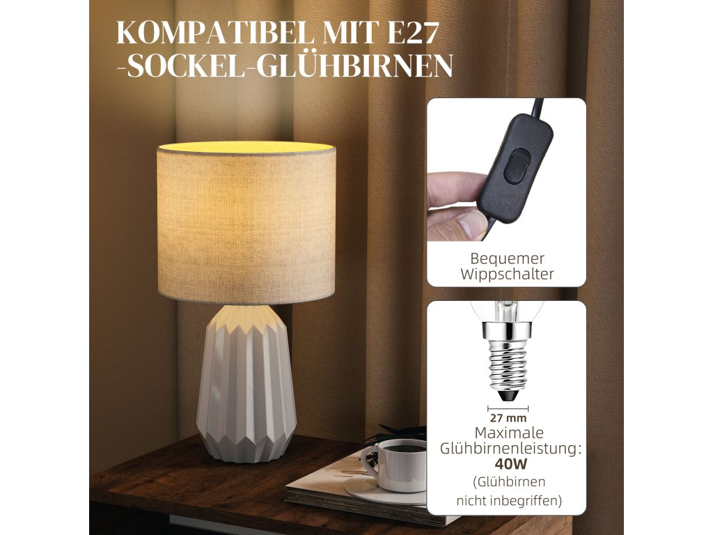 - Flexibilní volba žárovky E27: Tato noční lampička je vybavena standardní paticí E27 a podporuje žárovky LED až do výkonu 40 W. Díky odnímatelné konstrukci můžete snadno vyměnit žárovky a zvolit si tak ideální osvětlení pro svůj pokoj. Žárovka není součástí dodávky.