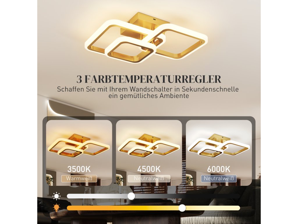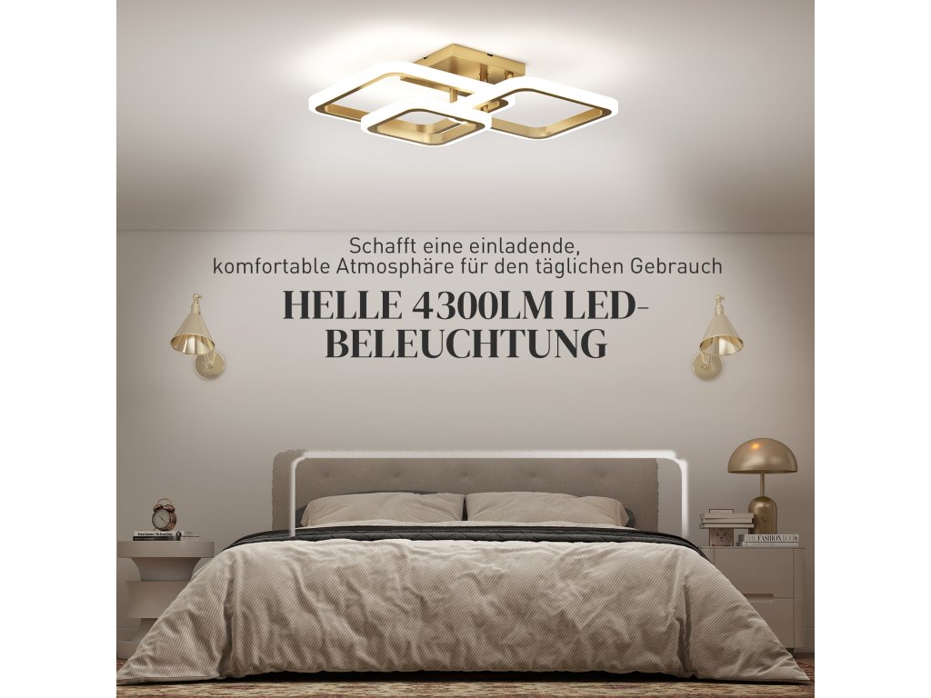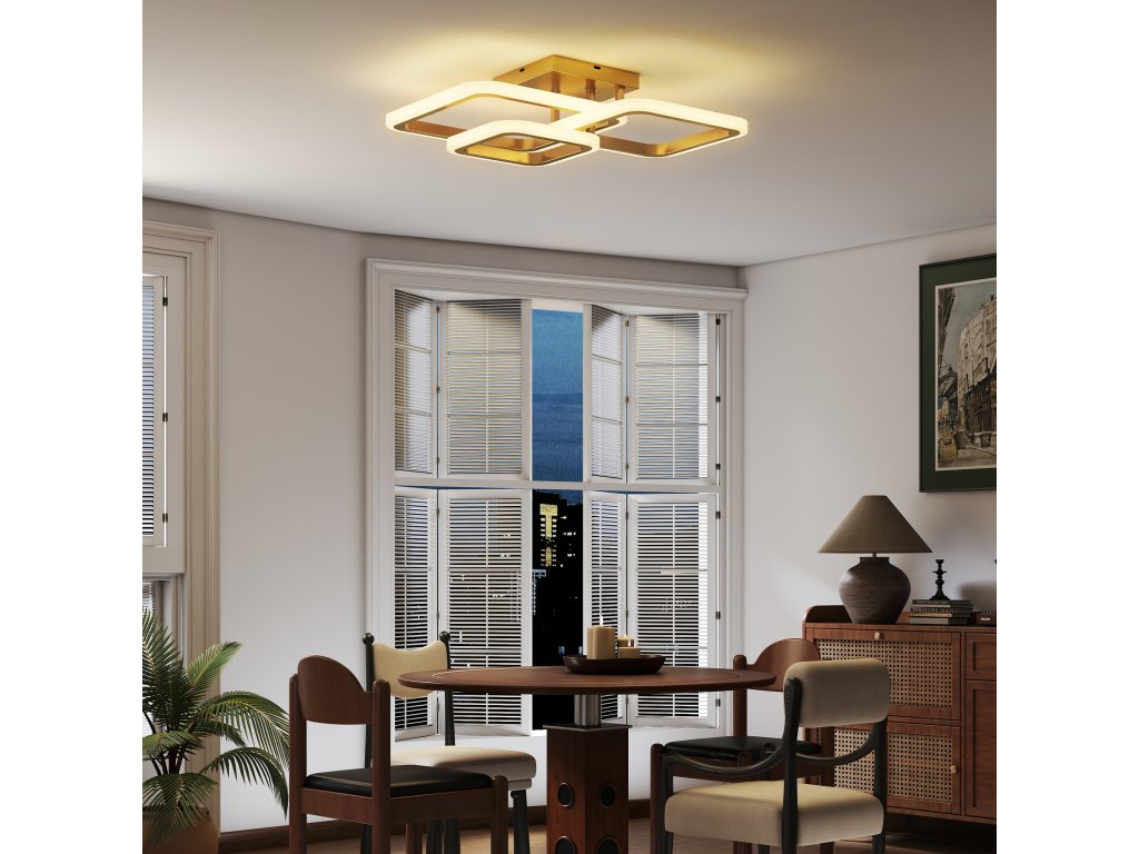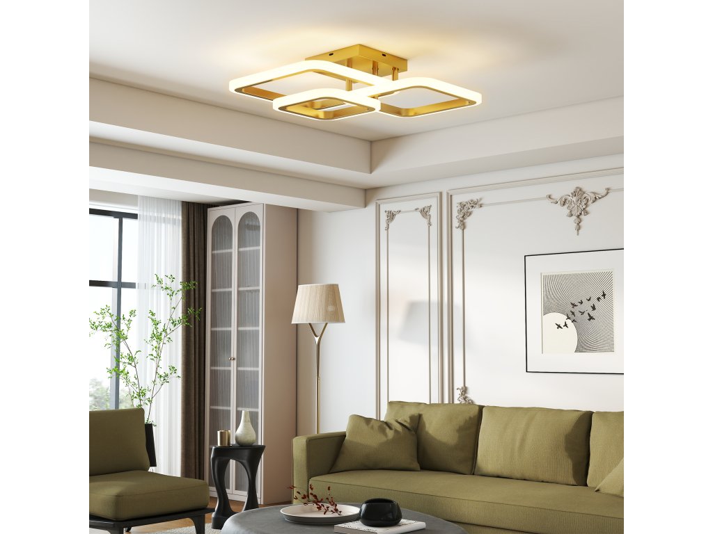 - ✔ Stropní svítidlo do ložnice má tři zlaté čtvercové kruhy, které dodávají moderní umělecký nádech