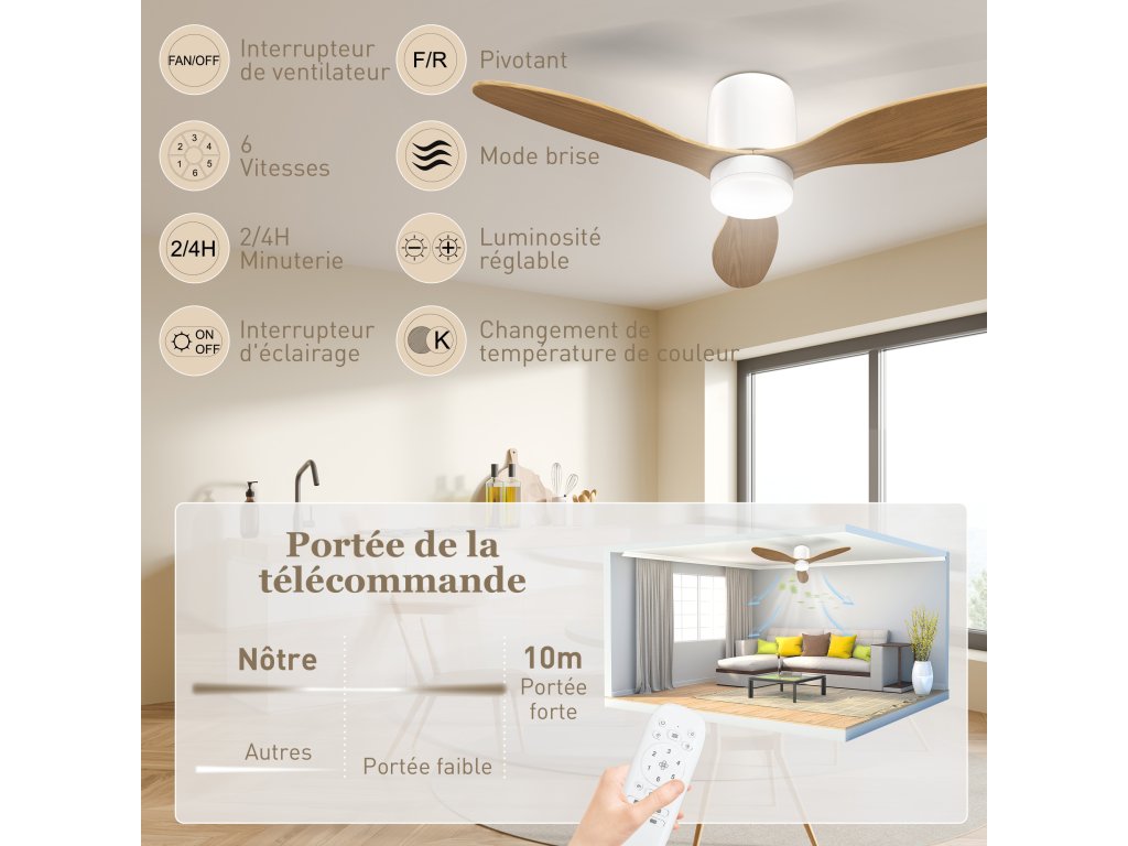- ✔ Tichý stropní ventilátor s LED světelným zdrojem s dlouhou životností, který snižuje náklady a účty za elektřinu