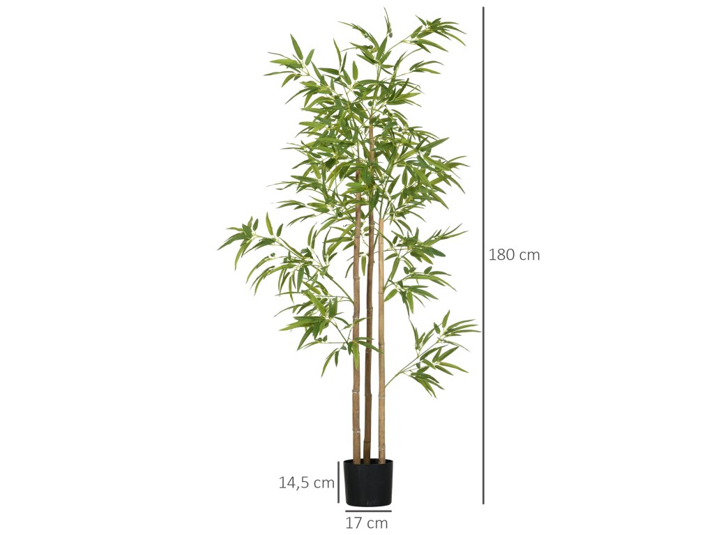 - Není nutná žádná montáž: lze ihned použít! Celková výška: 180 cm; - Rozměry květináče: Ø17 x 14V cm. Předmontováno, stačí jen prodloužit větve a listy umělé rostliny