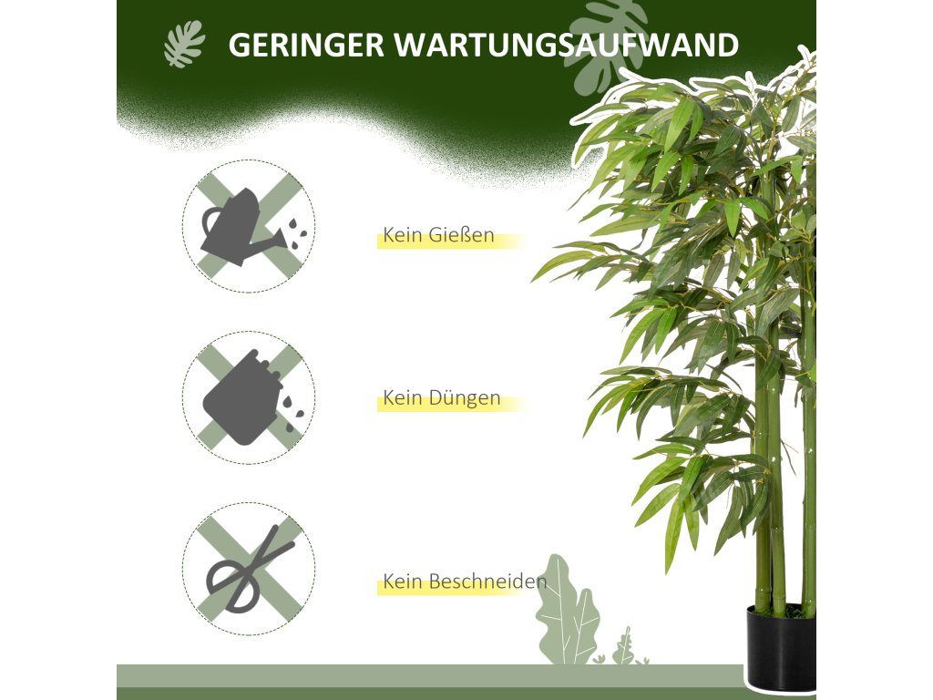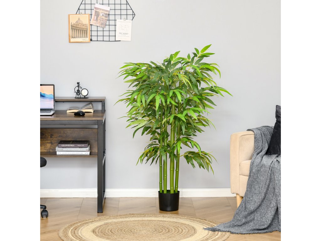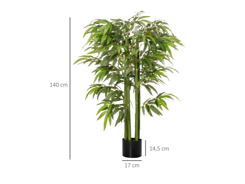 HOMCOM Umělá rostlina, plastový bambus v květináči, 780 listů, realistický vzhled, nenáročná údržba, 140 cm, zelená barva